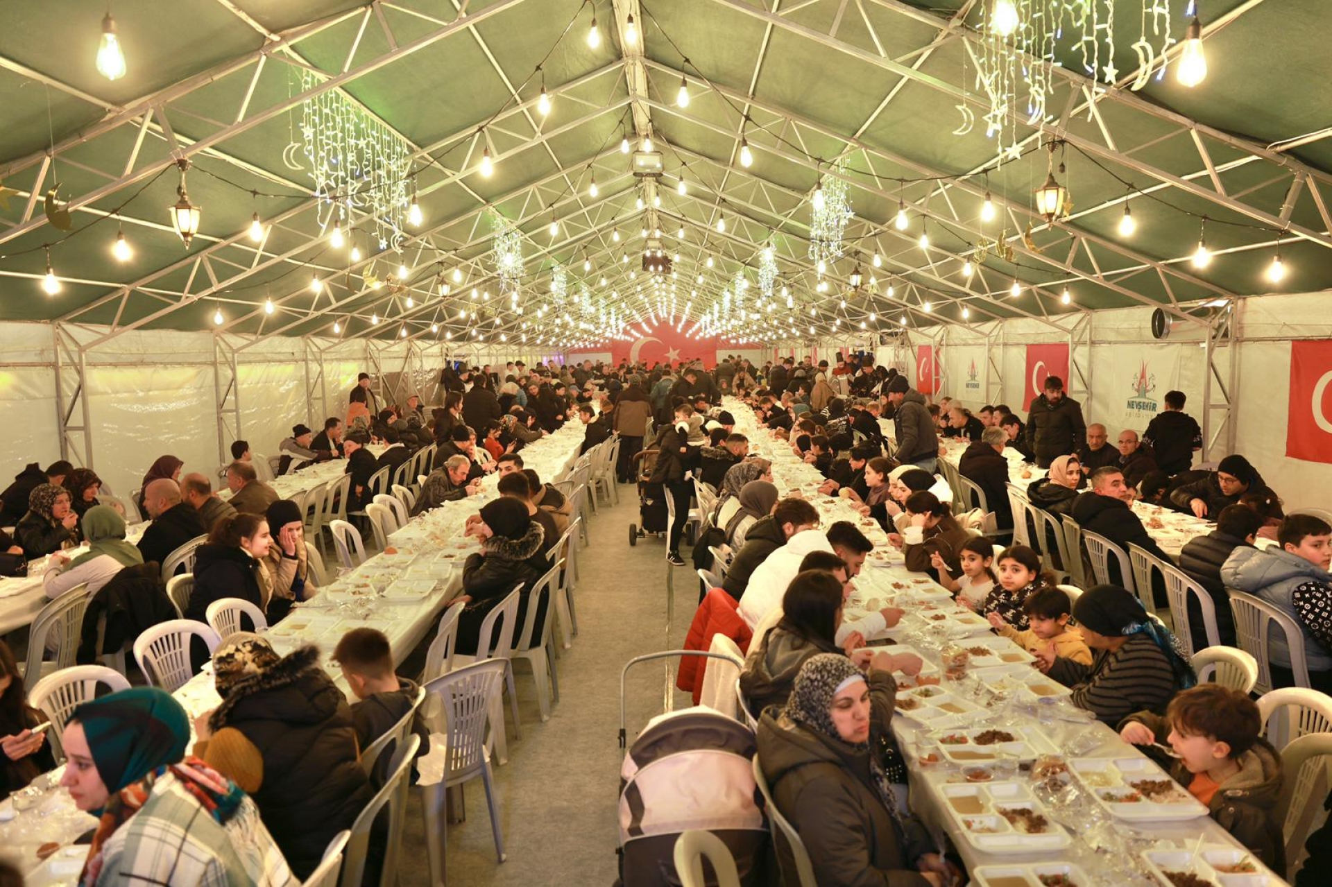 Nevşehir Belediyesi tarafından Kapadokya Kültür ve Sanat Merkezi önüne kurulan iftar çadırı, Ramazan ayının ilk gününde binlerce kişiyi ağırladı.