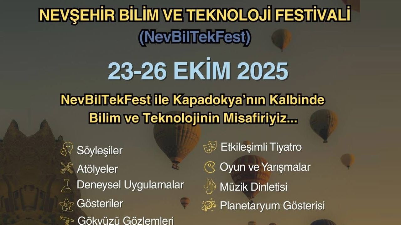 Nevşehir’de ilk kez düzenlenecek Nevşehir Bilim ve Teknoloji Festivali (NevBilTekFest), 23-26 Ekim tarihleri arasında bilim ve teknoloji tutkunlarını Kapadokya’nın büyüleyici atmosferinde buluşturacak.