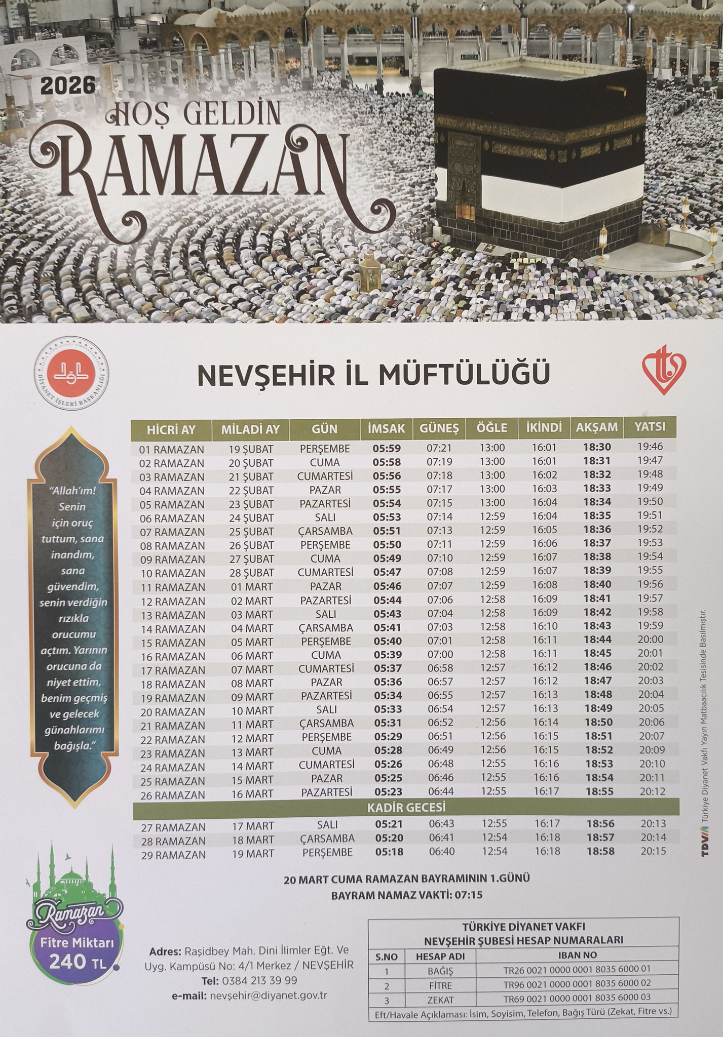 Bu yıl Nevşehir’de Ramazan ayı 29 gün sürecek. İlk gün sahura saat 05.59, ilk iftar ise 18.30’da yapılacak.