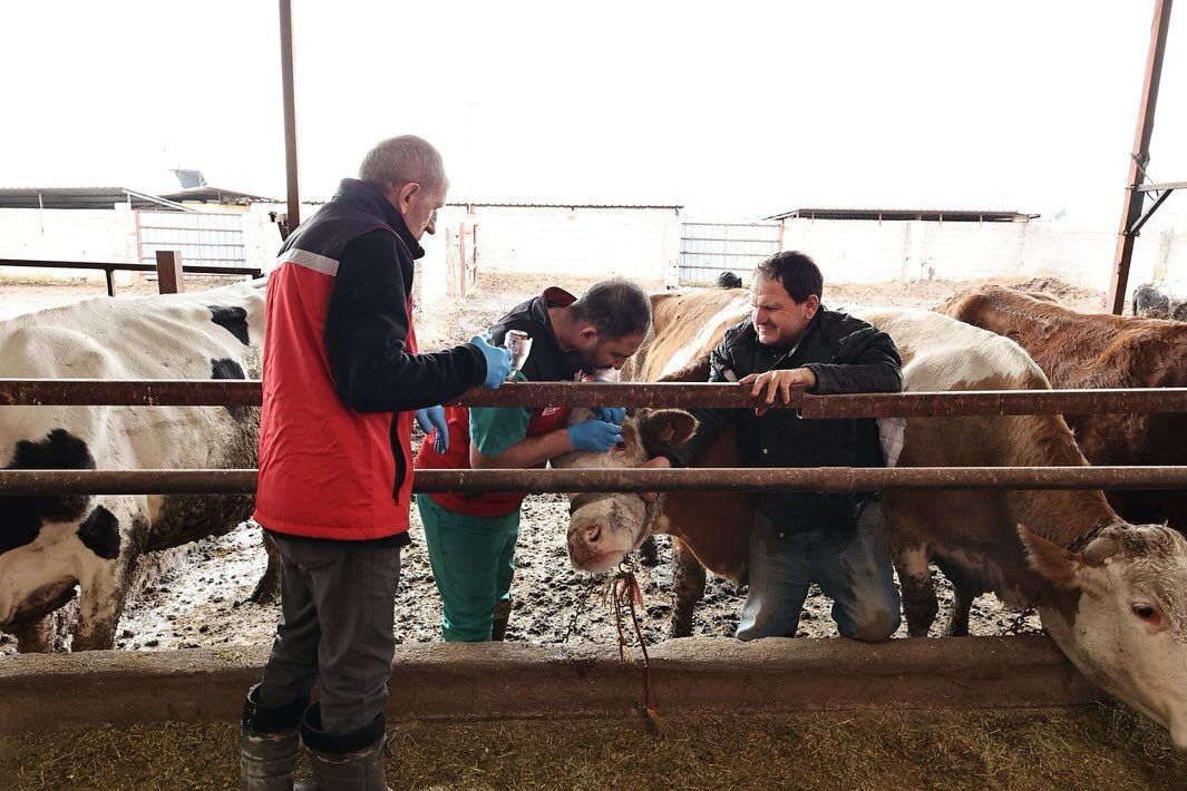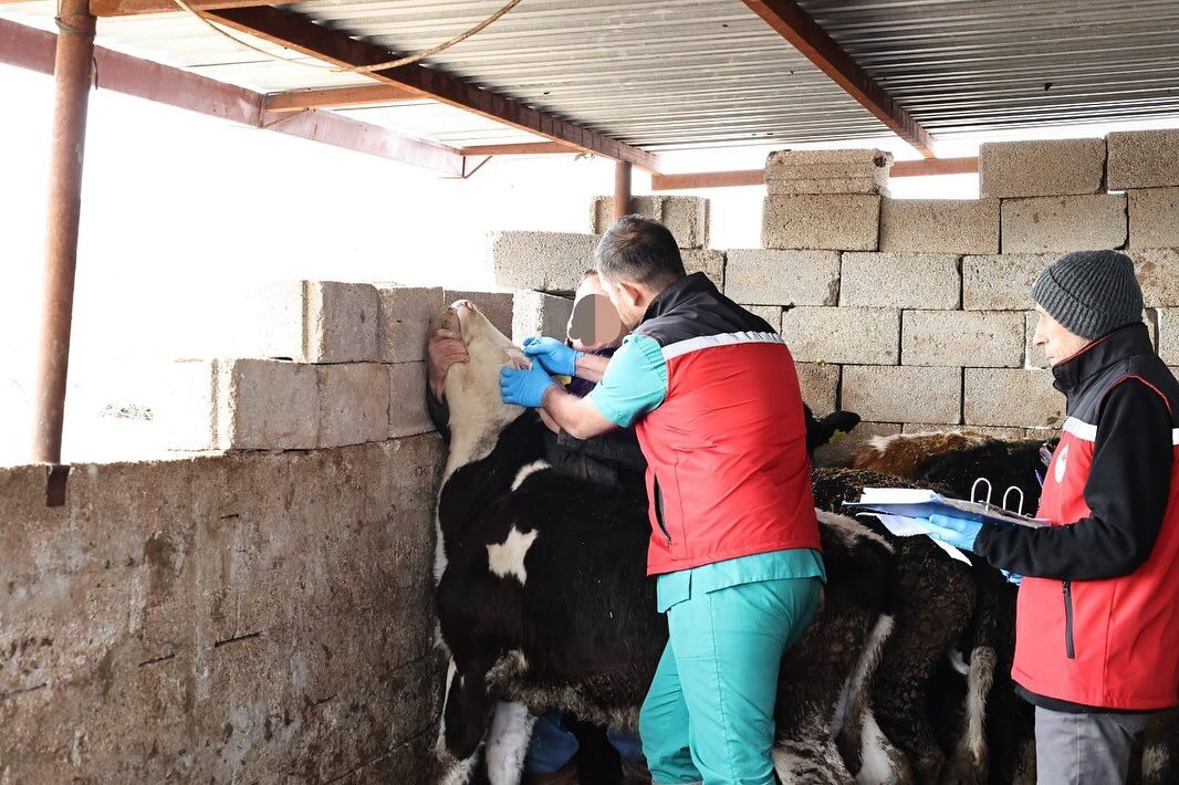 “Hayvan sağlığını korumak, bulaşıcı hastalıkların yayılmasını önlemek ve verimli hayvansal üretimi desteklemek amacıyla yürütülen çalışmalar kapsamında ekiplerimiz sahada üreticilerle buluşarak büyükbaş hayvanların şap aşılamalarını gerçekleştiriyor.”