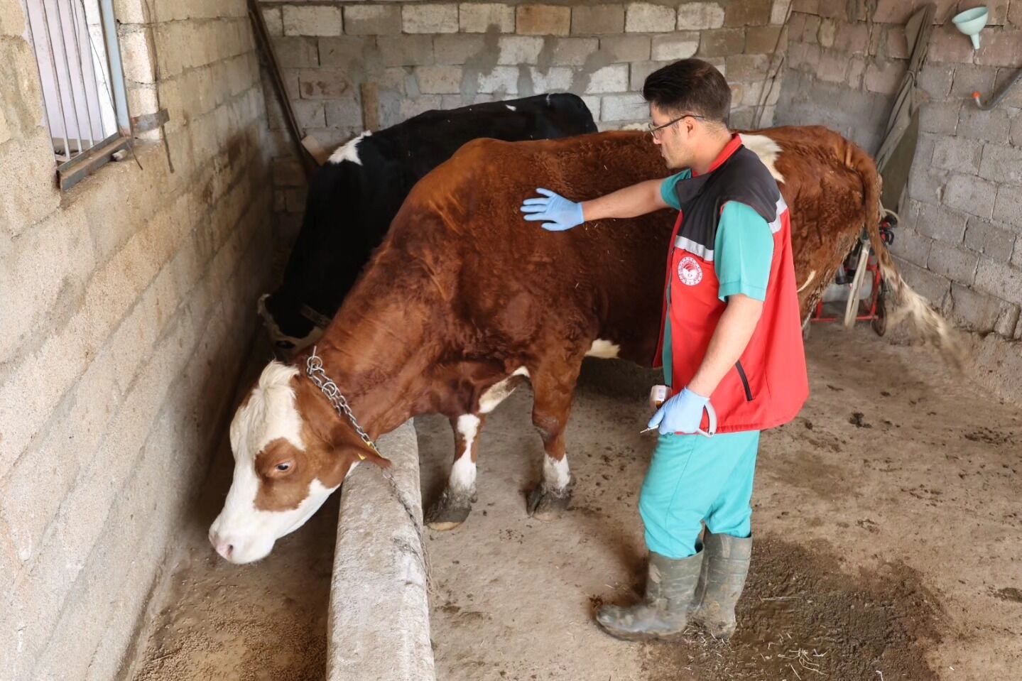 “Hayvan sağlığını korumak, bulaşıcı hastalıkların yayılmasını önlemek ve verimli hayvansal üretimi desteklemek amacıyla ekiplerimiz sahada üreticilerle buluşarak büyükbaş hayvanların şap aşılamalarını gerçekleştiriyor.”