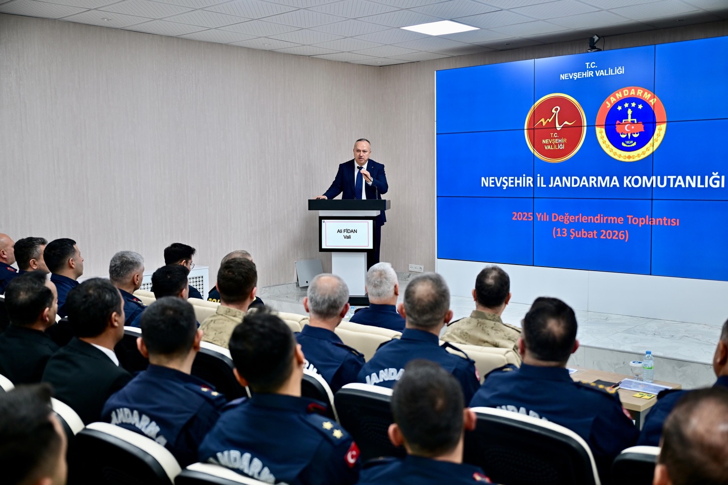 Nevşehir Valisi Ali Fidan’ın başkanlığında, İl Jandarma Komutanlığı’nın 2025 yılı boyunca yürüttüğü güvenlik ve asayiş faaliyetlerinin ele alındığı Değerlendirme Toplantısı gerçekleştirildi. Toplantıda, 2025 yılı çalışmaları kapsamlı şekilde analiz edilirken 2026 yılına yönelik hedef ve planlamalar da değerlendirildi.