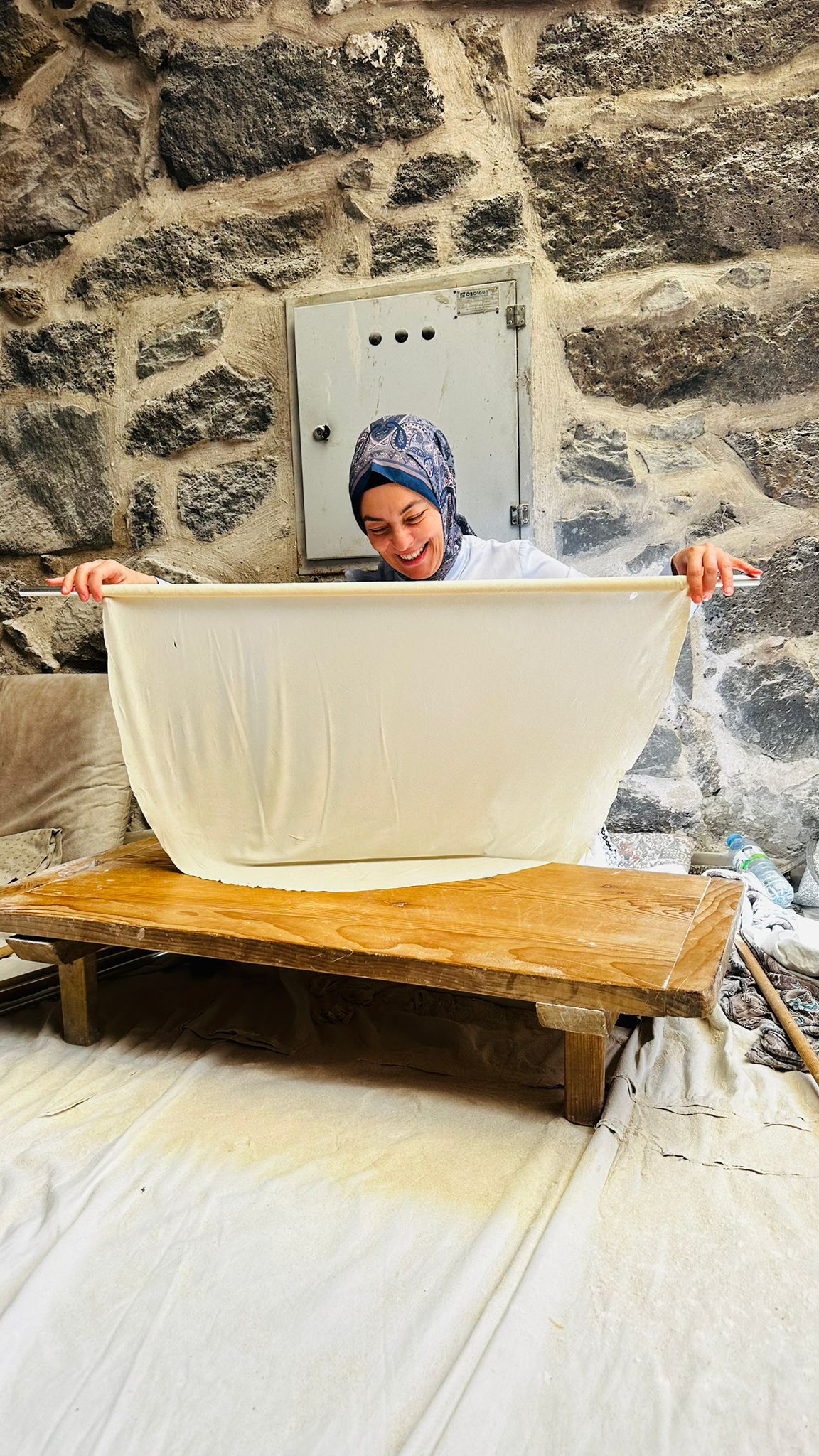 Etkinlikte yöresel üretimin önemine dikkat çekmek isteyen İl Müdürü Yasemin Demirörs, Tatlarin’de kadın girişimcilerle birlikte kışlık yufka açtı, incir reçeli kaynattı ve el emeğiyle hazırlanan kışlık geleneksel üretim sürecine bizzat eşlik etti.