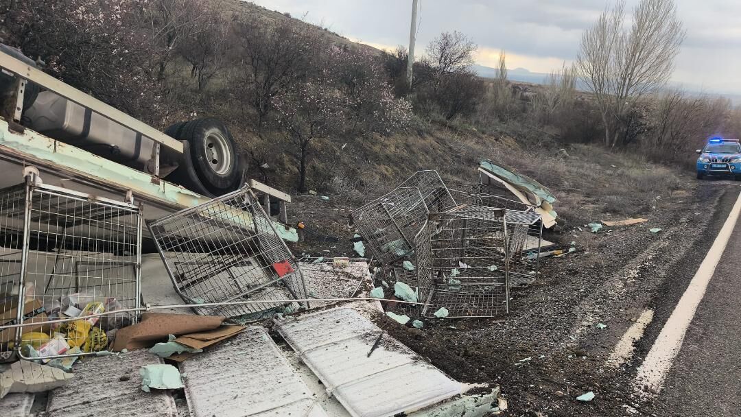 Nevşehir’in Hacıbektaş ilçesi, Gülşehir yolu üzeri Gümüşkent köyü mevkiinde 06 EEZ 108 plakalı kamyonet henüz bilinmeyen bir nedenle kontrolden çıkarak yol kenarına devrildi. İhbar üzerine olay yerine sağlık ve jandarma ekipleri sevk edildi.
