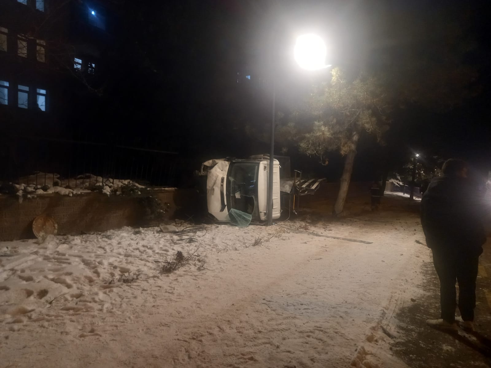 Nevşehir’in Güzelyurt Mahallesi Zübeyde Hanım Caddesi, Avanos yolu üzeri JAKEM yanı lojmanlar önünde meydana gelen trafik kazasında, 50 SA 935 plakalı açık kasa kamyonet ile 38 NC 309 plakalı otomobil çarpıştı. Çarpışmanın etkisiyle kamyonet yürüyüş yoluna devrildi.