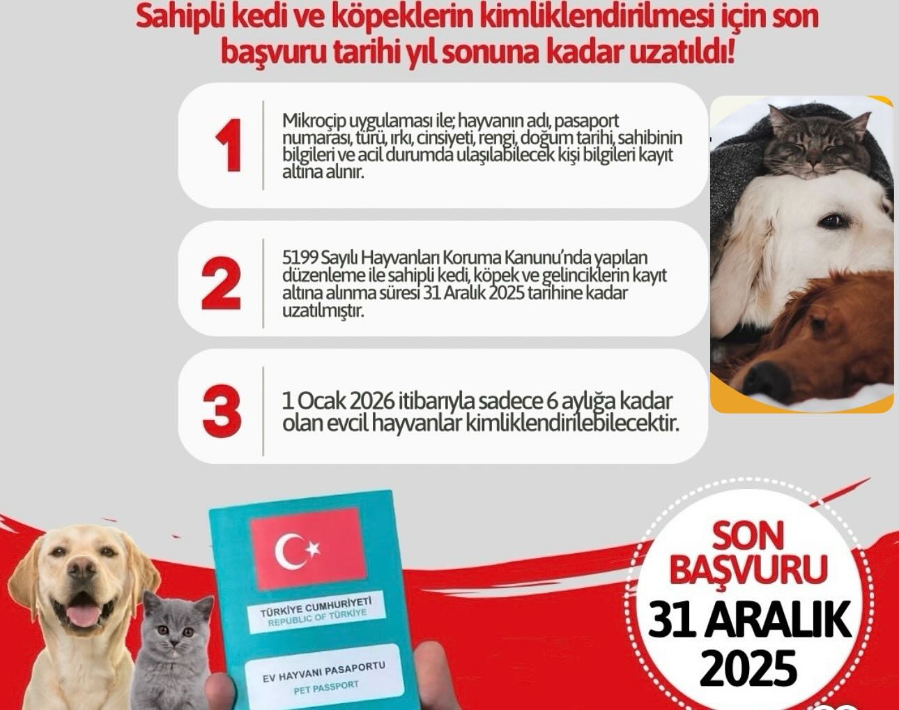 “Evcil dostlarımızı kayıt altına almak, onların güvenliği ve yasal yükümlülüklerimizi yerine getirmek adına büyük önem taşımaktadır. Süre dolmadan işlemlerinizi gerçekleştiriniz.” şeklinde açıklamada bulundu.