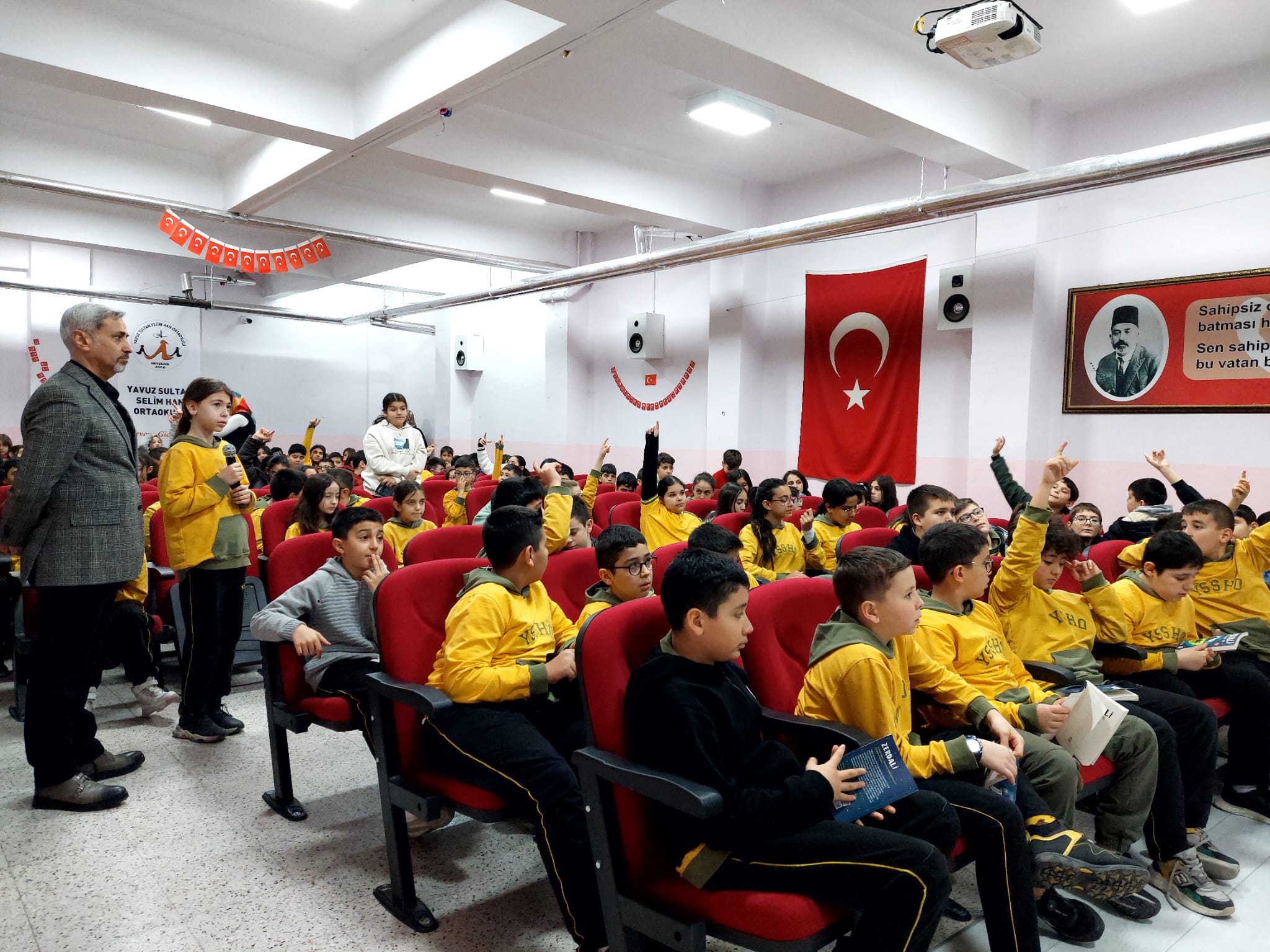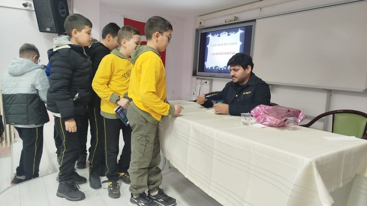 Samimi bir ortamda gerçekleşen etkinlikte öğrenciler, merak ettikleri soruları yazara yöneltme fırsatı bulurken, kitap okumanın bireysel ve toplumsal gelişimdeki rolü üzerine keyifli bir sohbet gerçekleştirildi. Yazar Yaşar Bayraktar, öğrencilere okuma alışkanlığının erken yaşlarda kazanılmasının önemine dikkat çekerek, kitapların hayal dünyasını geliştirdiğini vurguladı.