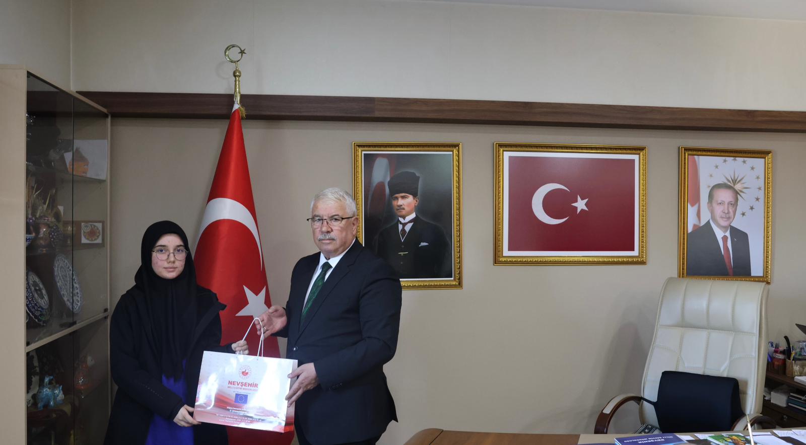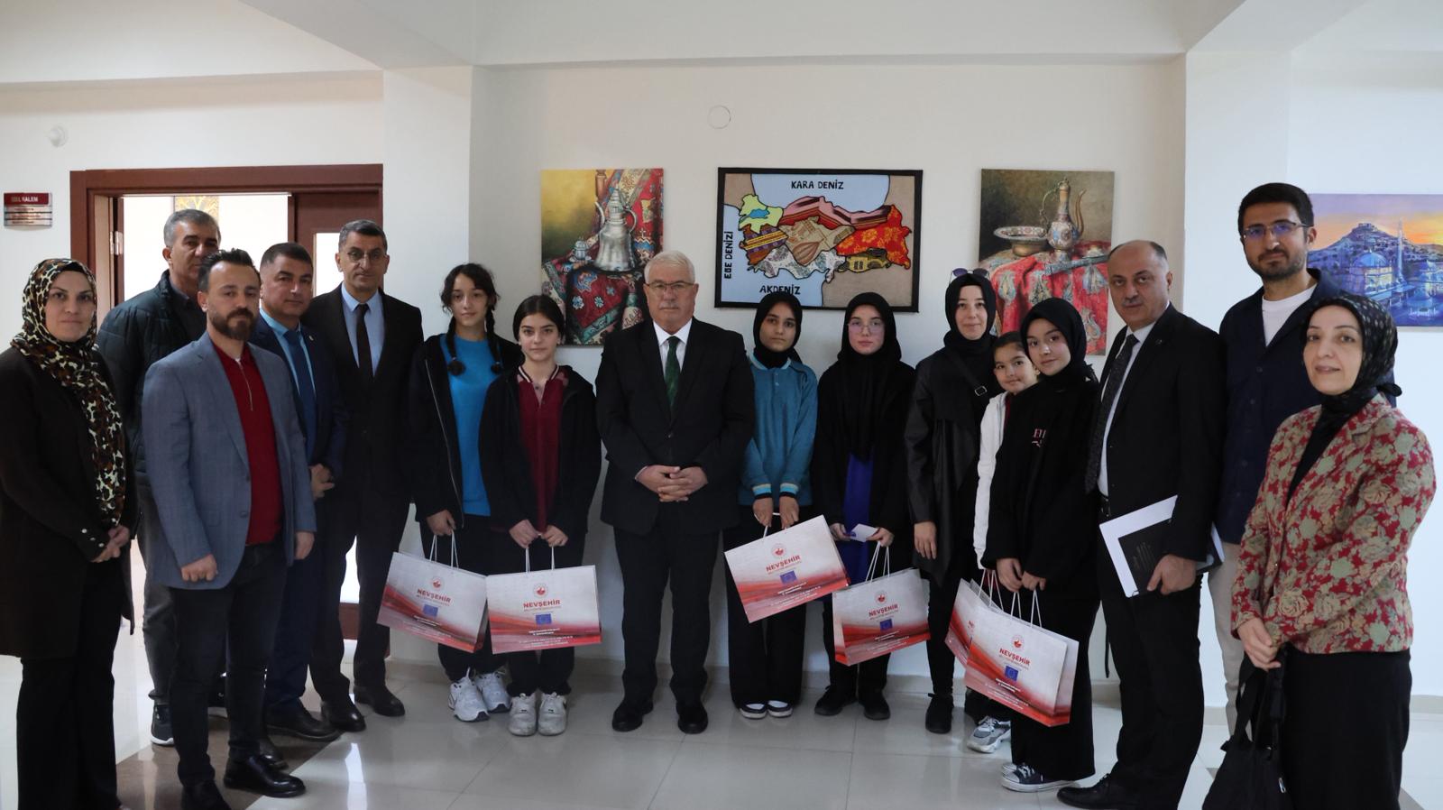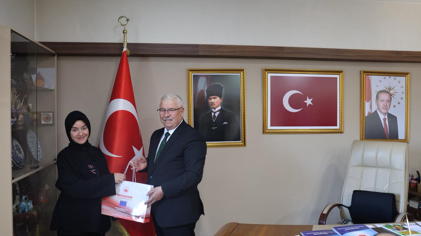 Cumhuriyetin 102. yıl dönümü kutlamaları kapsamında, Millî Eğitim Bakanlığı tarafından düzenlenen “Köklü Geçmişten Güçlü Cumhuriyete” konulu yarışmada, resmî-özel ortaokul öğrencileri şiir ve lise öğrencileri kompozisyon dallarında birbirinden güzel eserleri kaleme aldılar. Dereceye giren öğrencilere ödüllerini, İl Millî Eğitim Müdürü Yusuf Yazıcı takdim etti. İl Müdürü Yusuf Yazıcı, “Cumhuriyet; bir asrı aşan köklü bir miras ve koca bir çınardır. Geçmişimizden aldığımız güçle bu çınarın gölgesinde yetişen nesiller, “Ay Yıldızlı Al Bayrağımızı” ilelebet göklerde dalgalandırmaya devam edecektir.” ifadelerini kullandı. Yazıcı, yarışmaya katılan ve dereceye giren tüm öğrencileri ve ilgili öğretmenleri tebrik ederek başarılarının devamını diledi. Ayrıca, ödül töreninde Nevşehir Spor Lisesi 9.sınıf öğrencisi Ebrar Çolak 9 yaşındayken yazmış olduğu ‘Altın Yumurta Avcıları’ isimli kitabını, İl Millî Eğitim Müdürü Yusuf Yazıcı’ya hediye etti.