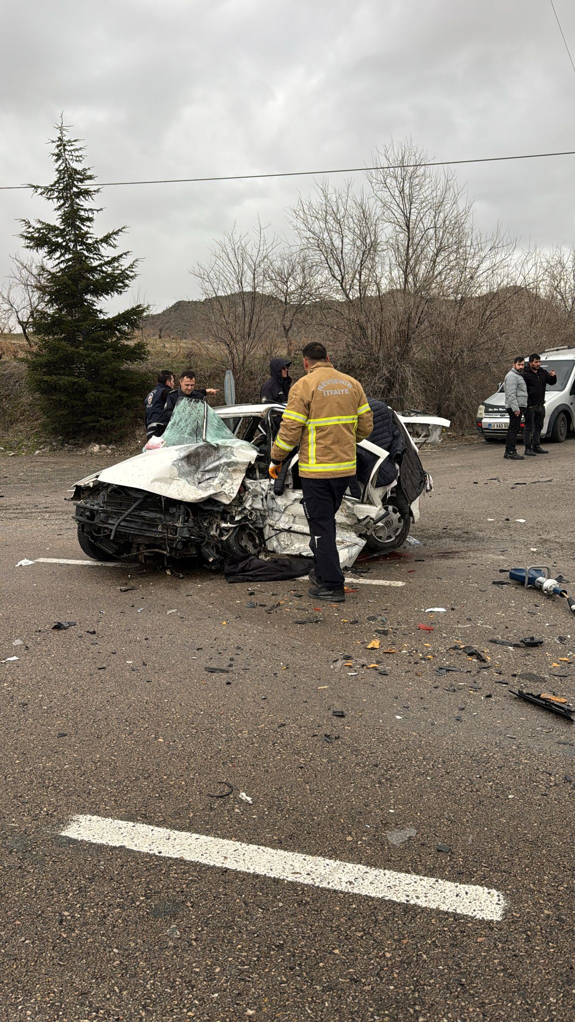 Nevşehir Acıgöl yolu üzerinde meydana gelen korkunç trafik kazasında ilk belirlemelere göre iki kişi hayatını kaybederken, 7 kişi yaralandı.