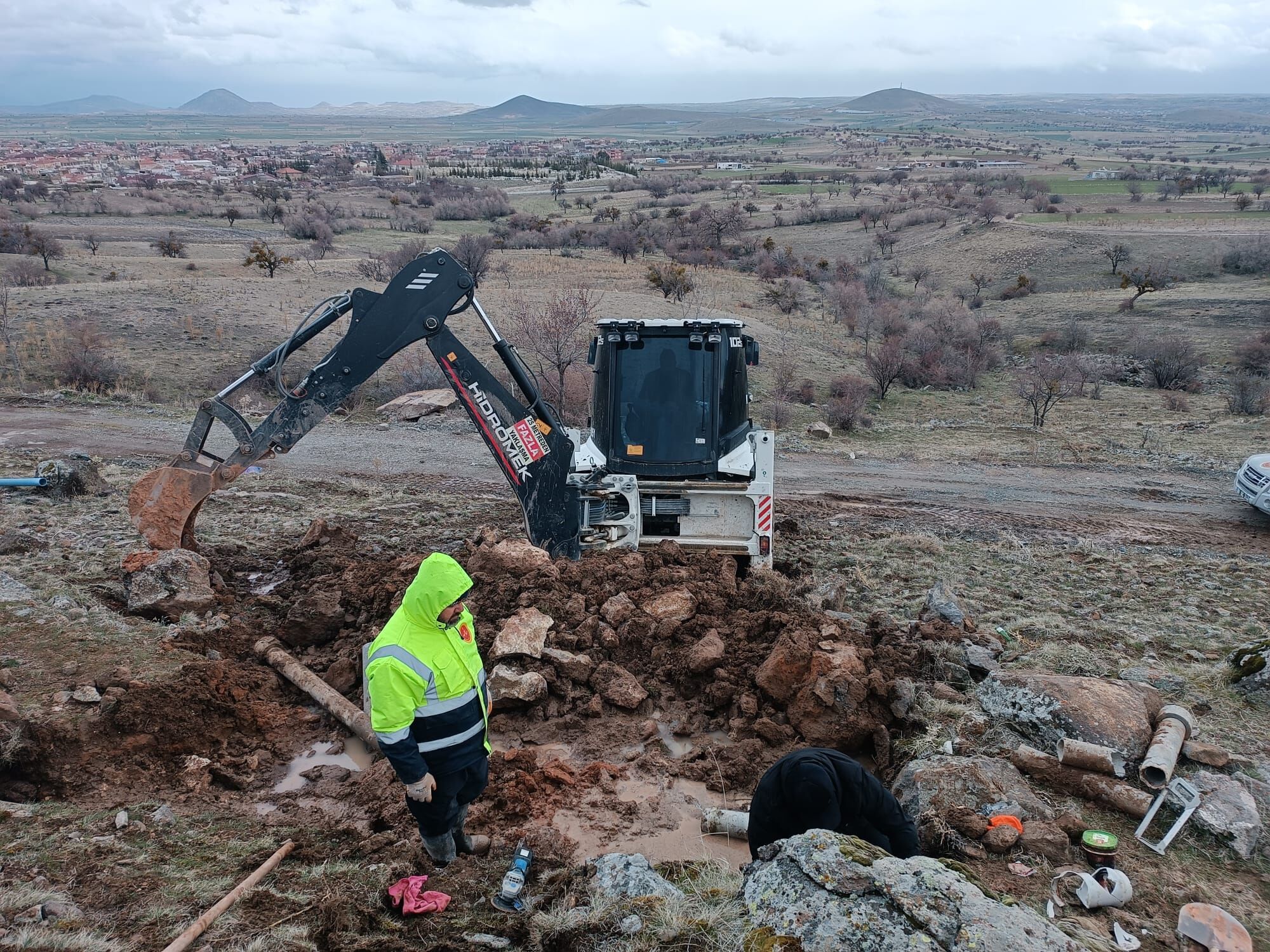 Ürgüp Bahçeli Köyü’nde 2100 metre pompa hattı döşenirken, Mazı Köyü’nde su arızası giderildi.