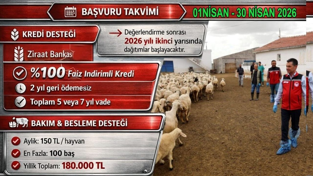 - Bakım ve besleme desteği: Aylık 150 TL/hayvan, maksimum 100 baş için yıllık toplam 180.000 TL