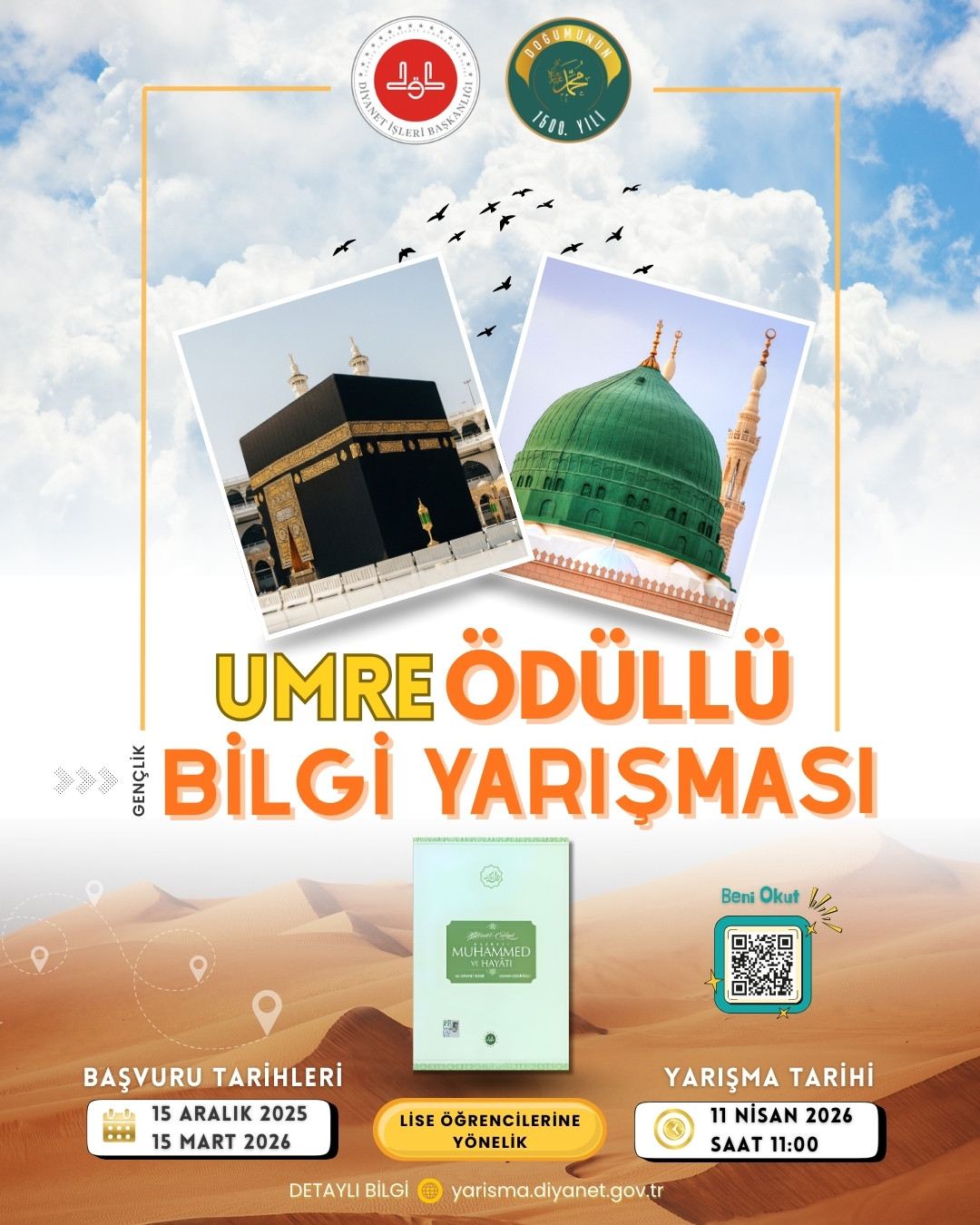 Sınav, 11 Nisan 2026 tarihinde saat 11.00’de gerçekleştirilecek. Yarışma sonucunda dereceye giren öğrencilere umre ziyareti ödülü verilecek. Bu ödülün, gençlerin dini ve kültürel birikimine büyük katkı sağlaması bekleniyor.