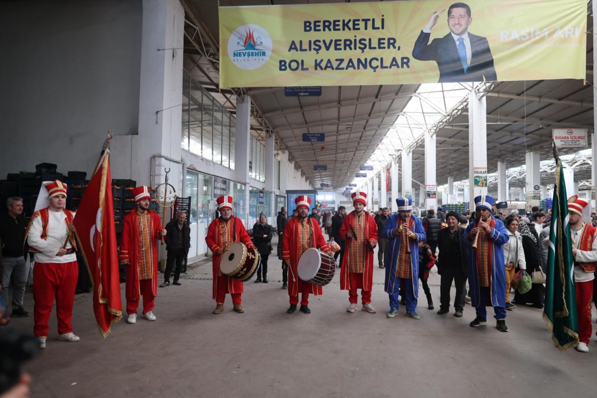 Nevşehir’de Ramazan ayının manevi atmosferi, Nevşehir Belediyesi Mehteran Takımı tarafından düzenlenen gösteri ile pazaryerine taşındı. Pazaryerinde alışveriş yapan vatandaşlar, mehter marşlarının coşkusuyla karşılaştı ve geleneksel Osmanlı müziğinin eşsiz ritimleriyle alışveriş keyfini artırdı.