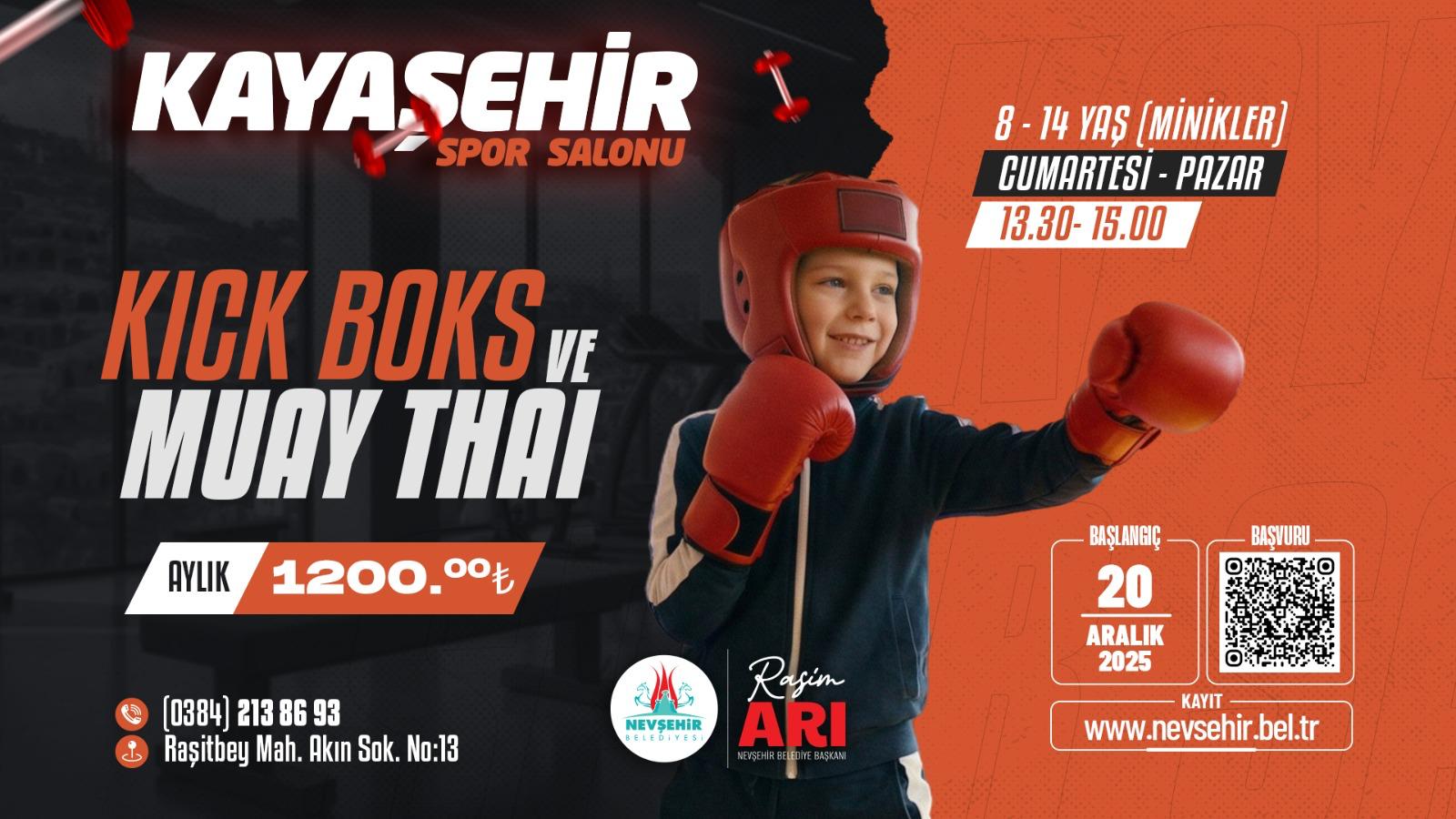 Nevşehir Belediyesi uhdesinde faaliyetlerini yürüten Kayaşehir Spor Salonu’nda 8-14 yaş ile 15 yaş ve üzeri Kick Boks ve Muay Thai kursları düzenlenecek. Ön kayıtlar Nevşehir Belediyesi Gençlik ve Spor Hizmetleri kurs başvuru ekranından Kayaşehir spor salonuna girilip yapılacak. Ön talebin sistem üzerinden alınmaya başladığı kurslar için 8-14 yaş aralığı kursiyerler 20 Aralık 2025 tarihinde 15 yaş ve üzeri olanlar ise 23 Aralık 2025 tarihinde başlayacak.