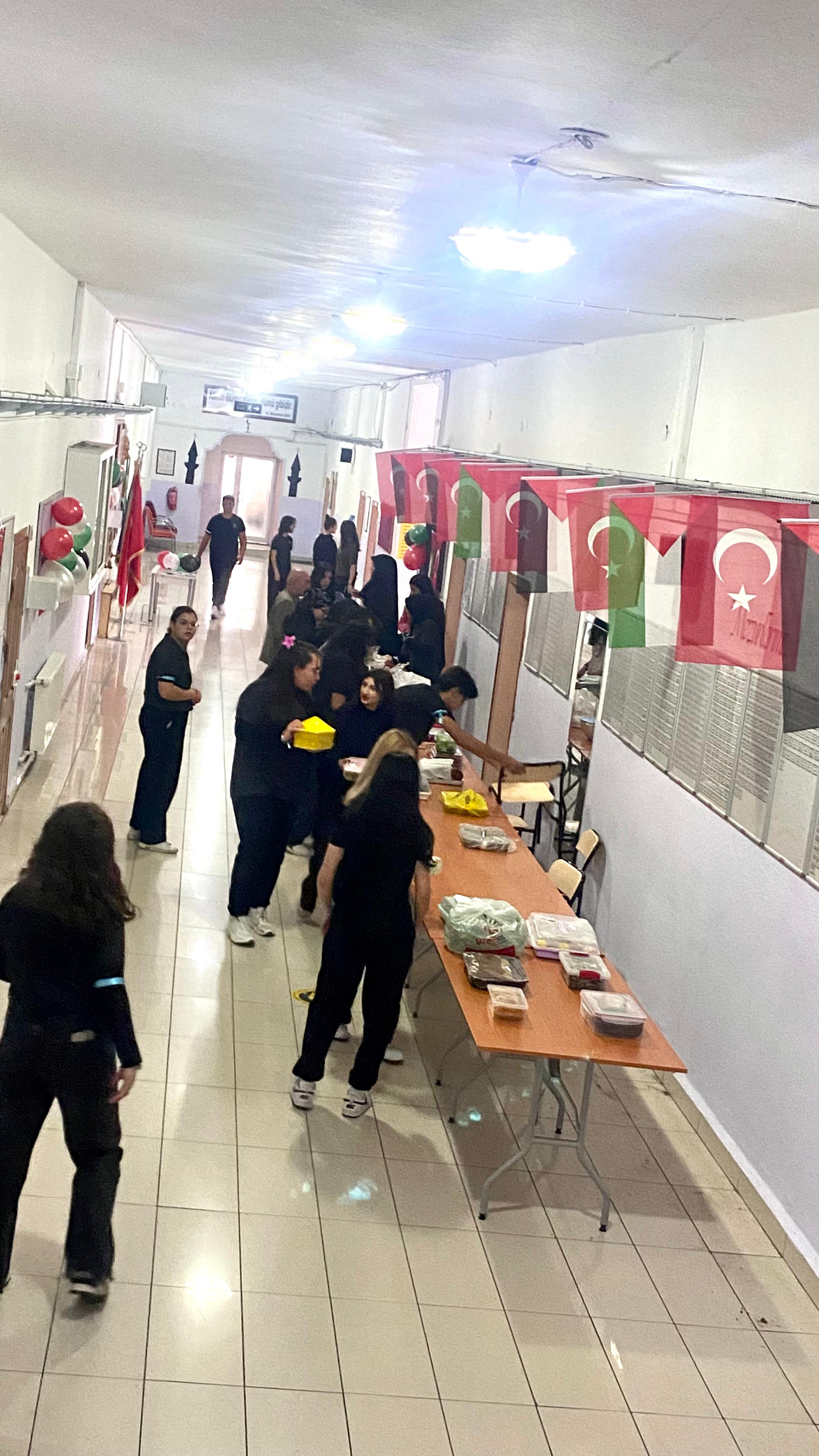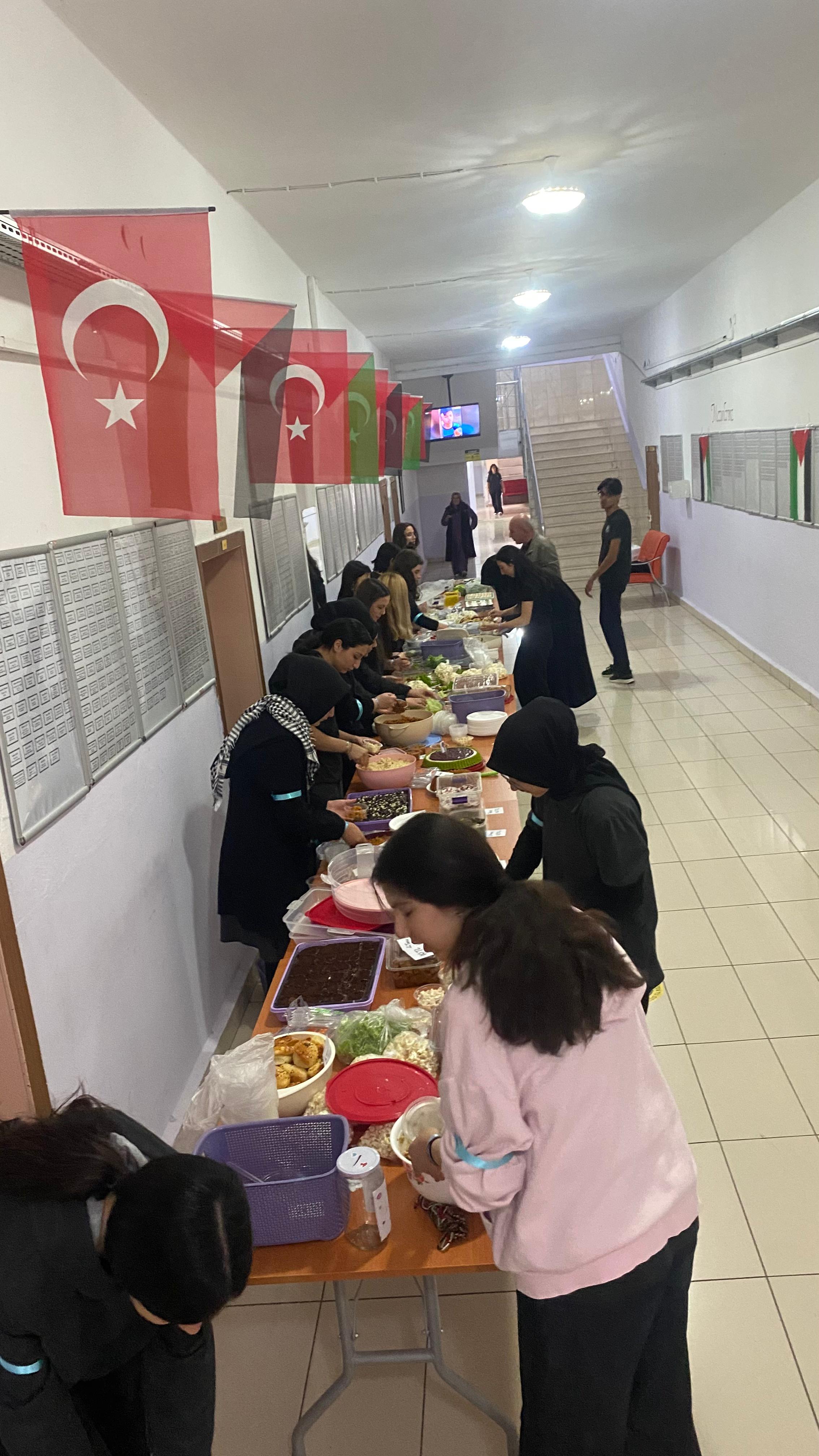 Etkinlik kapsamında öğrenciler tarafından hazırlanan yiyecek ve el emeği ürünler satışa sunuldu. Elde edilen gelir, Gazze’deki mazlumlara ulaştırılmak üzere yardım kuruluşlarına bağışlanacak.