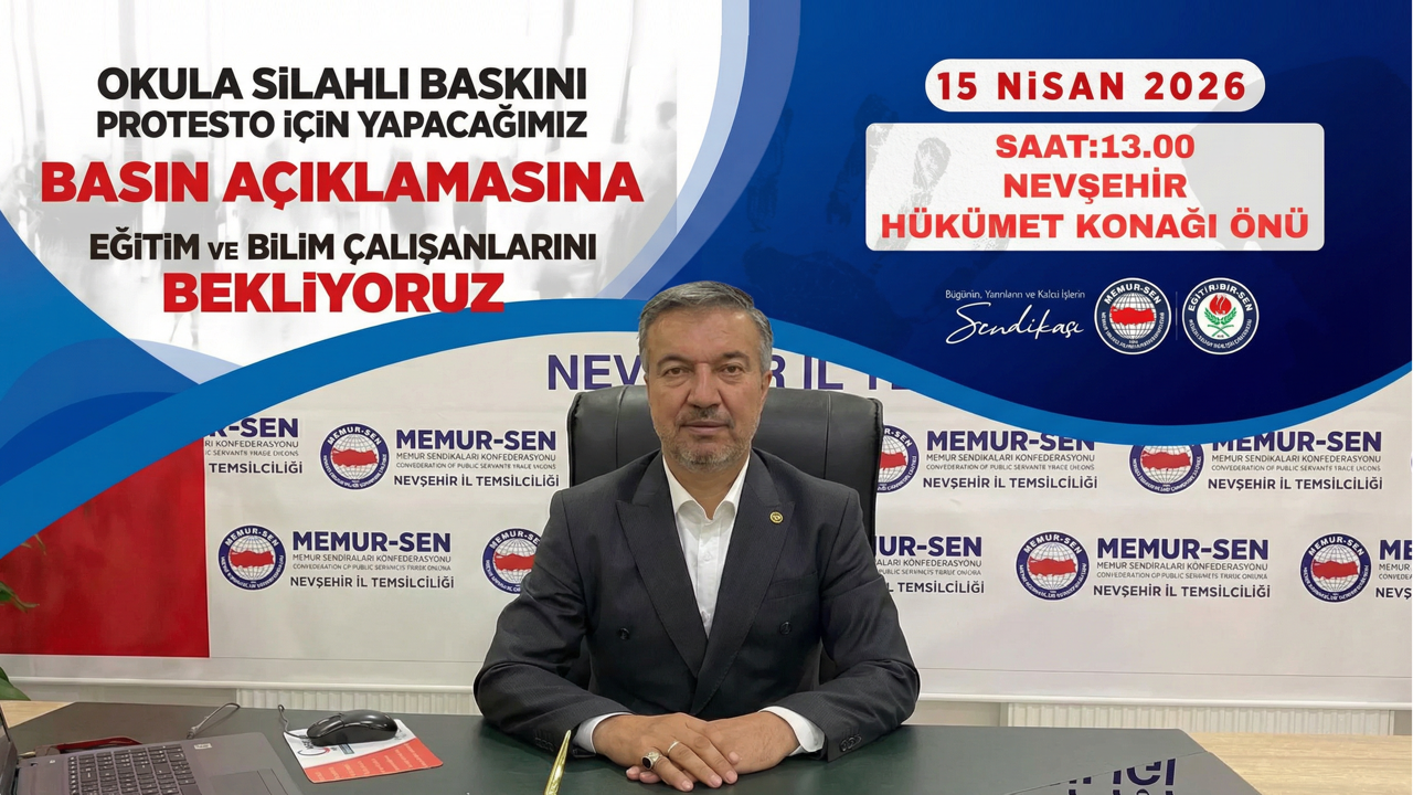 Açıklama, “Eğitimde şiddete dur diyoruz” mesajıyla sona ererken, Nevşehir’deki eğitim camiasının da bu çağrıya güçlü destek vermesi bekleniyor.