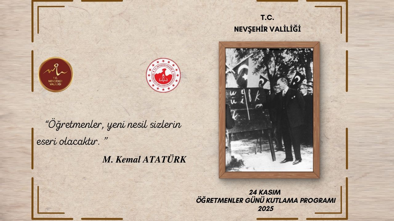 Nevşehir Valiliği, 24 Kasım Öğretmenler Günü kapsamında düzenlenecek kutlama programını açıkladı. Atatürk’ün “Öğretmenler, yeni nesil sizlerin eseri olacaktır” sözünden ilhamla hazırlanan program, il genelinde öğretmenlerin emeklerinin ve mesleğinin önemini vurgulamayı hedefliyor.