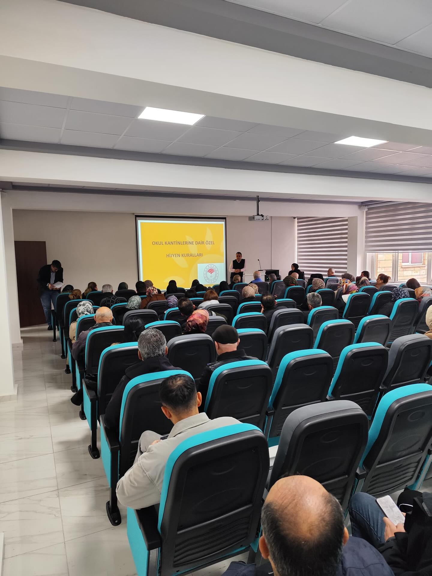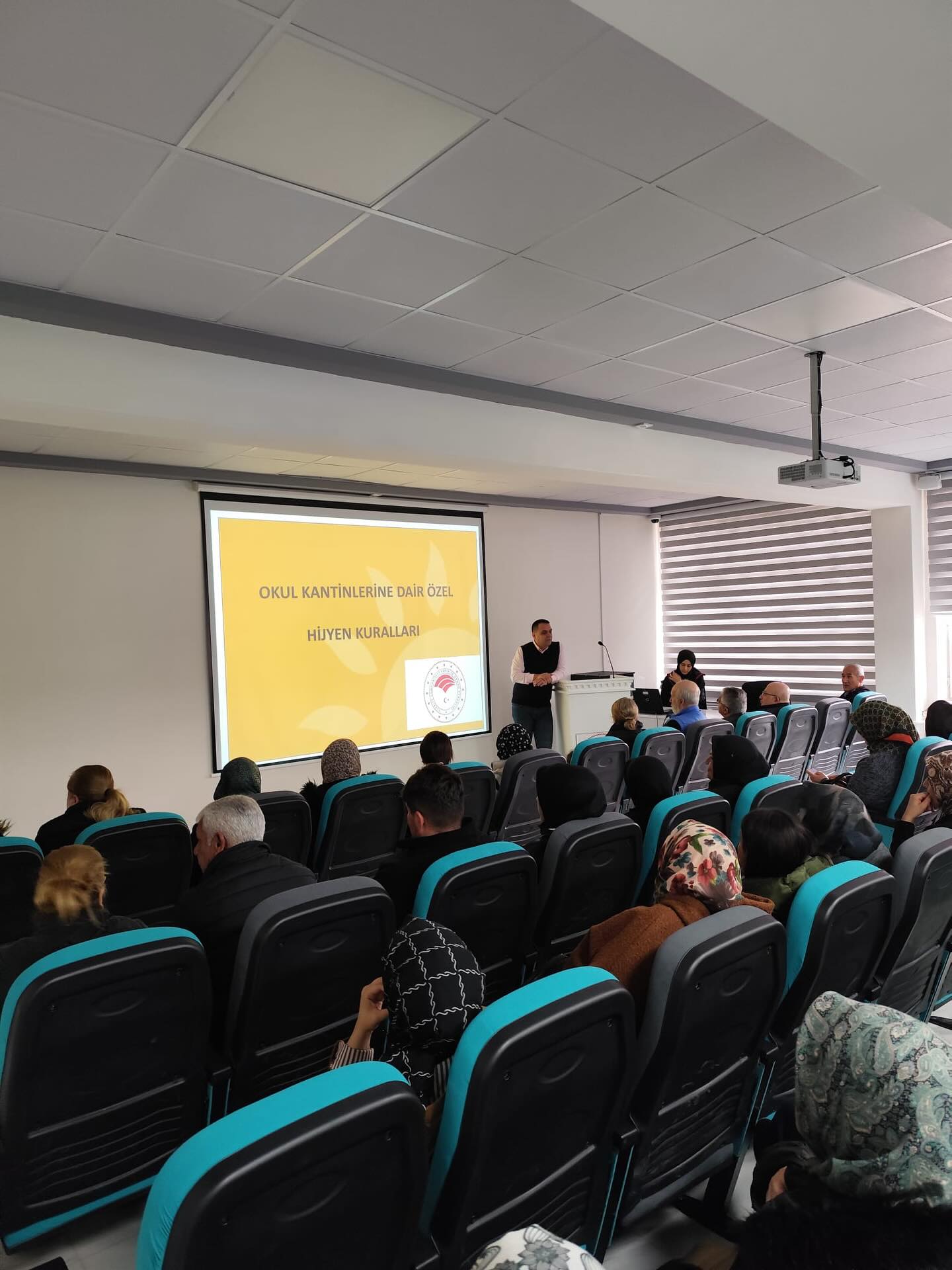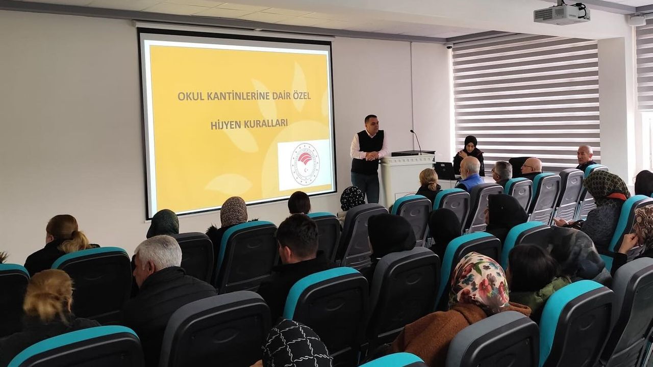 “Milli Eğitim Bakanlığına bağlı resmî ve özel okul/kurumlarda faaliyet gösteren yemekhane, kantin, kooperatif, kafeterya, büfe ve çay ocaklarında görev yapan yönetici ve çalışanlara yönelik Hijyen Eğitimini Gıda ve Yem Şube Müdürlüğümüz personeli tarafından başarıyla gerçekleştirdik.
