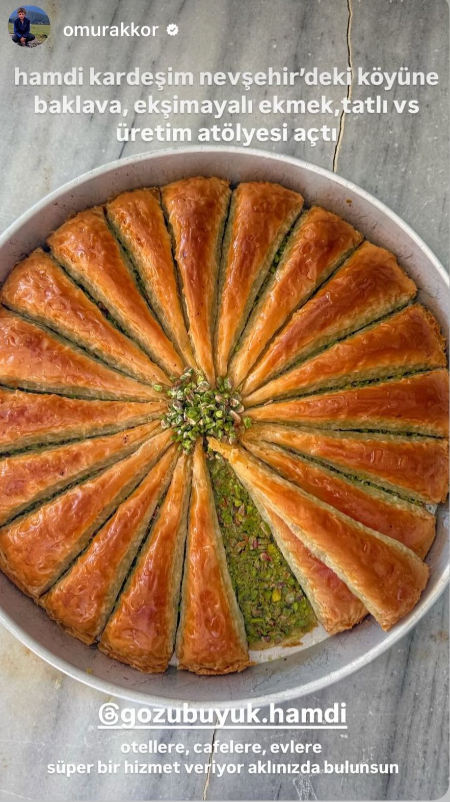 HAMDİ BAKLAVA BAKERY işletme sahibi Hamdi Gözübüyük; Nevşehir'in merkez ilçeye bağlı Sulusaray kasabasında ata tohumu buğdaylardan elde edilen tamamen organik katkısız doğal ekşi mayalı çavdar ekmeği, siyez, karakılçık, tam buğday, baget, cıabatta, focacia, Kıbrıs bulla ekmek çeşitleri, baklava, tatlı vs. üretim atölyesi açtı. Otellere, cafelere, evlere, iş yerlerinize hizmet veriyoruz. Aklınızda bulunsun." dedi.