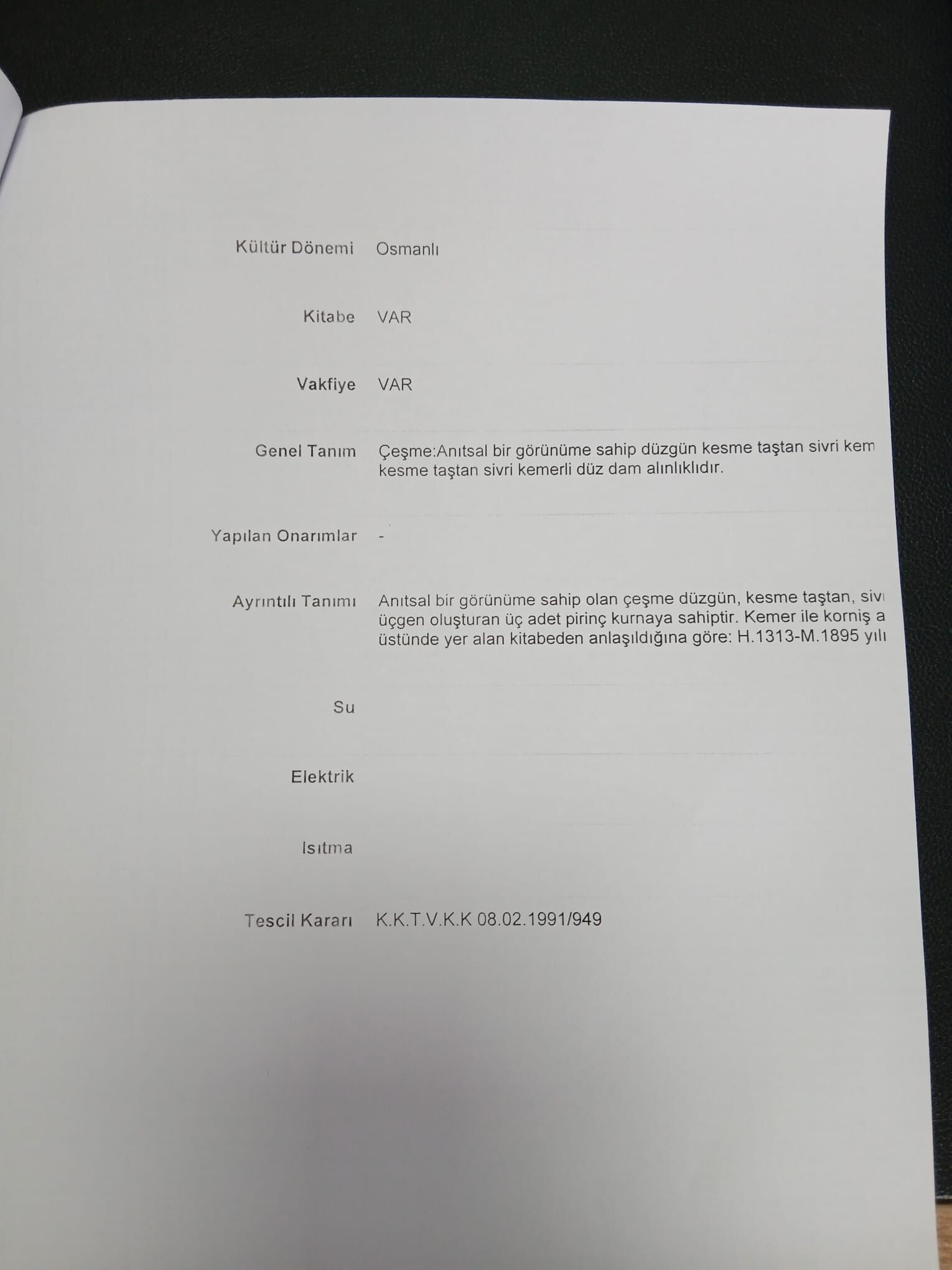 Kemer ile korniş arasında Osmanlıca “Maşallah” ibaresi yer alıyor. Kurnanın hemen üzerinde bulunan kitabe ise yapının tarihini ve geçirdiği onarımı belgeliyor.