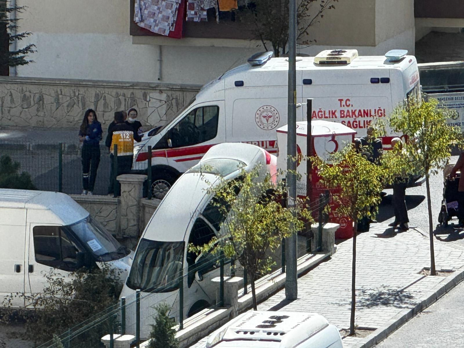 Apartman bahçesine düşen araçta maddi hasar meydana gelirken, olayla ilgili inceleme başlatıldı.