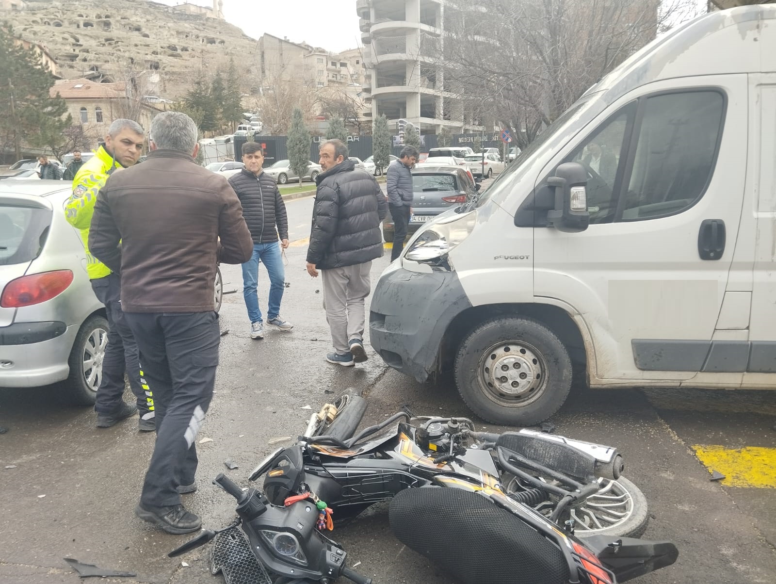 Nevşehir TÜİK Kavşağı’nda otomobil ile motosikletin karıştığı trafik kazasında 2 kişi yaralandı. Kaza, saat 16.30 sıralarında meydana geldi.