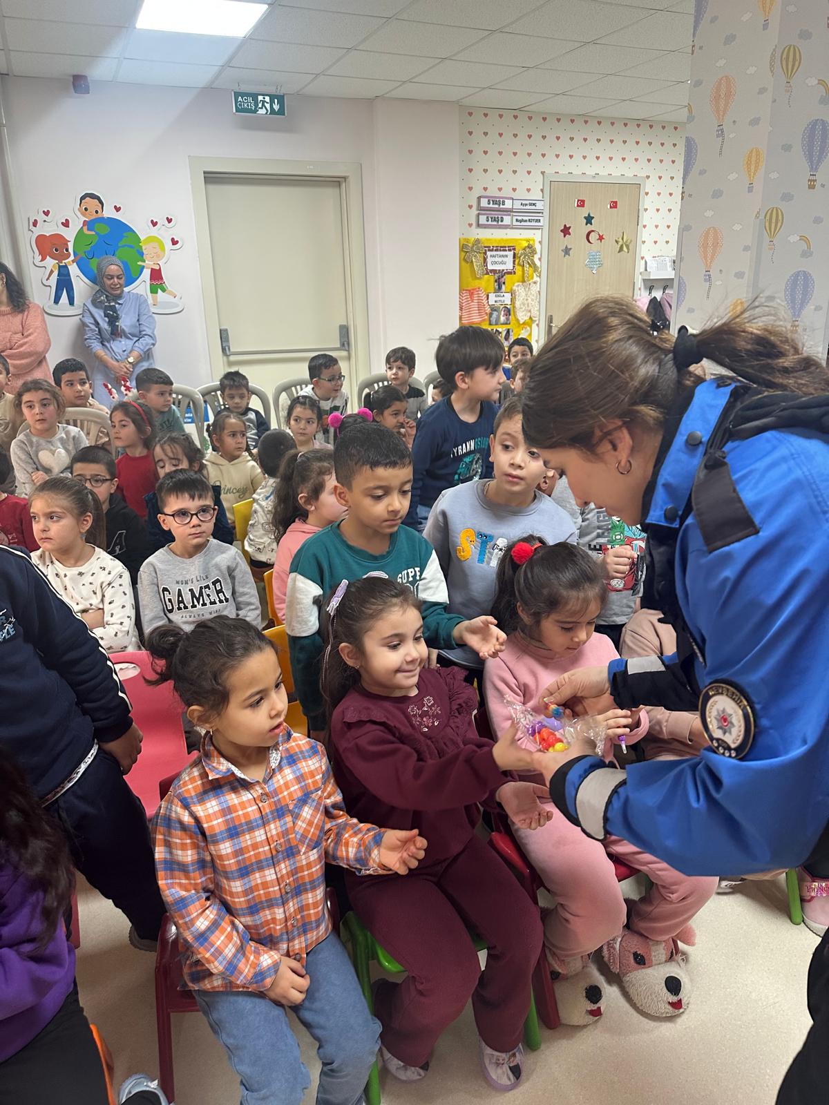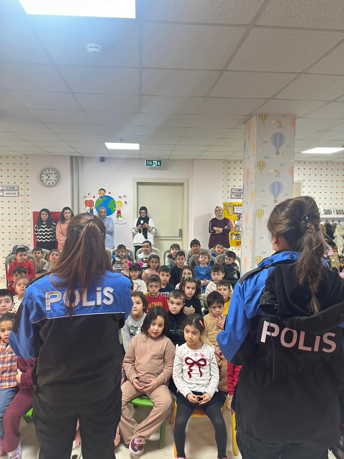 Proje kapsamında Hacı Mesut Çetin Anaokulu ziyaret edilerek, okulda öğrenim gören minik öğrencilerle “Drama Etkinliği” gerçekleştirildi. Etkinlik boyunca polis ekipleri ve öğrenciler birlikte eğlenceli vakit geçirirken, çocukların sosyal gelişimine katkı sağlayacak oyunlar ve canlandırmalar yapıldı.