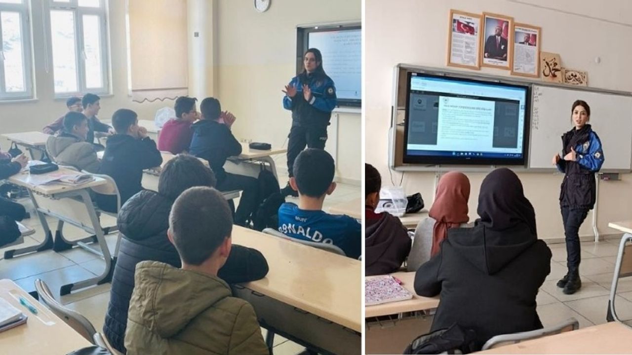 Ziyaret sırasında okulda öğrenim gören öğrencilere, “İnternet ve Sosyal Medya Kullanımı” konusunda bilgilendirme yapıldı. Polis ekipleri tarafından gerçekleştirilen sunumda; internetin bilinçli kullanımı, sosyal medyada karşılaşılabilecek riskler, kişisel bilgilerin korunması ve dijital ortamda güvenli davranışlar hakkında önemli bilgiler paylaşıldı.