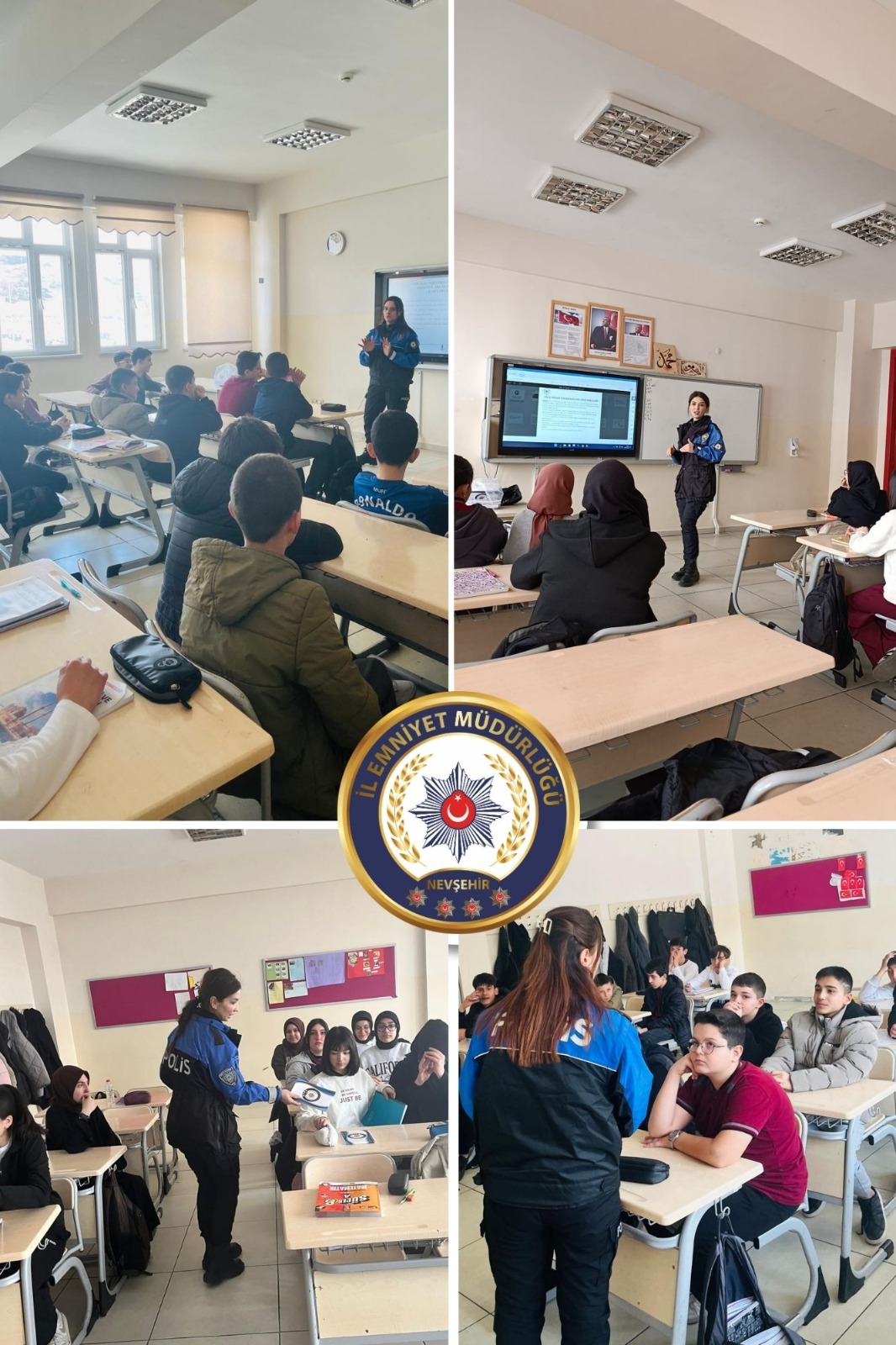 Nevşehir’de Toplum Destekli Polislik faaliyetleri kapsamında, okul ziyaretleri devam ediyor. Bu kapsamda Yunus Emre İmam Hatip Ortaokulu ziyaret edilerek, öğrencilerle bilinçlendirme çalışması gerçekleştirildi.