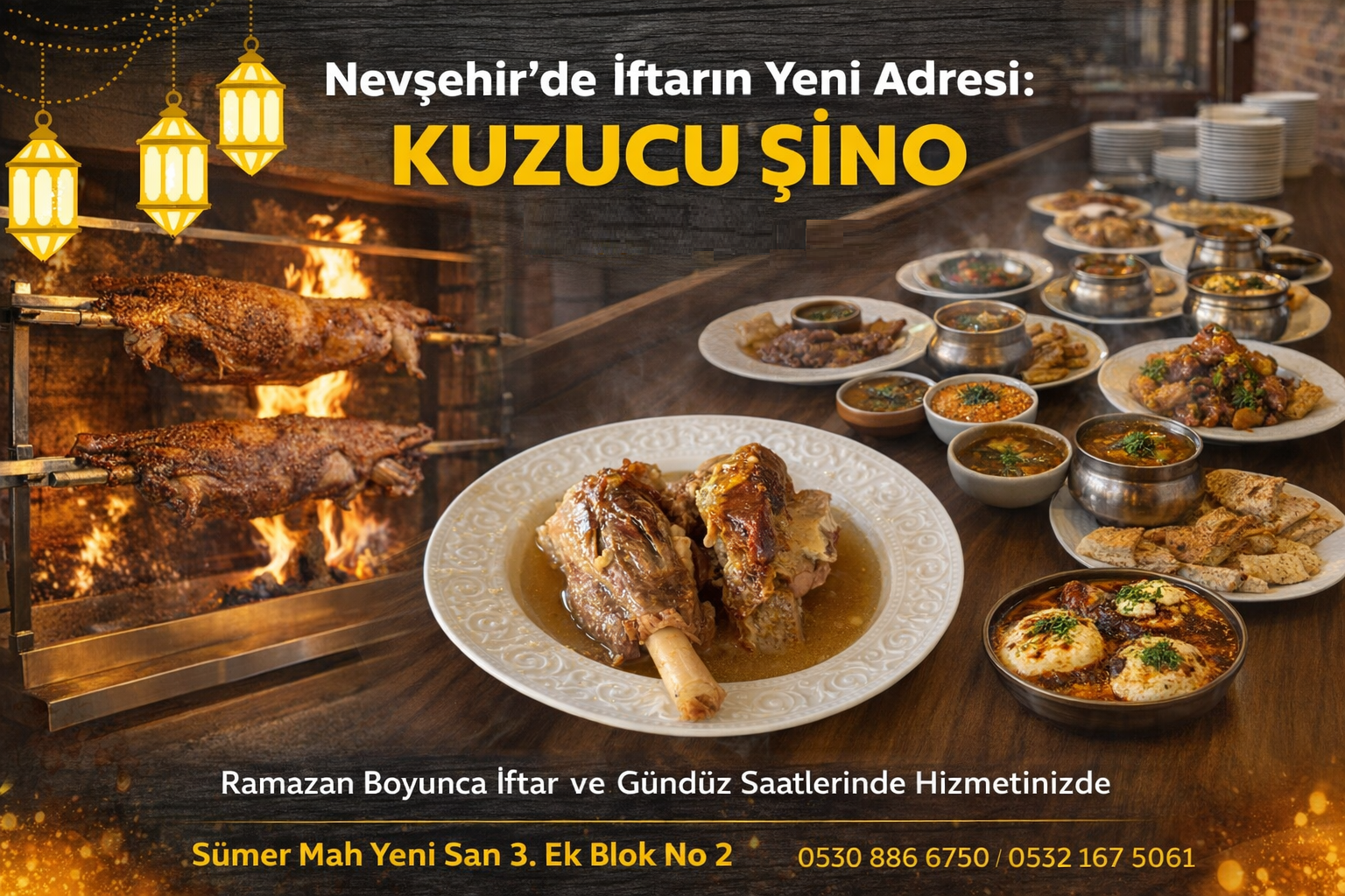 Kapadokya’da Ramazan iftar programları arasında önemli bir adres olmayı hedefleyen KUZUCU ŞİNO, “Bereketli sofralarımıza davetlisiniz” çağrısıyla misafirlerini ağırlamaya hazırlanıyor.
