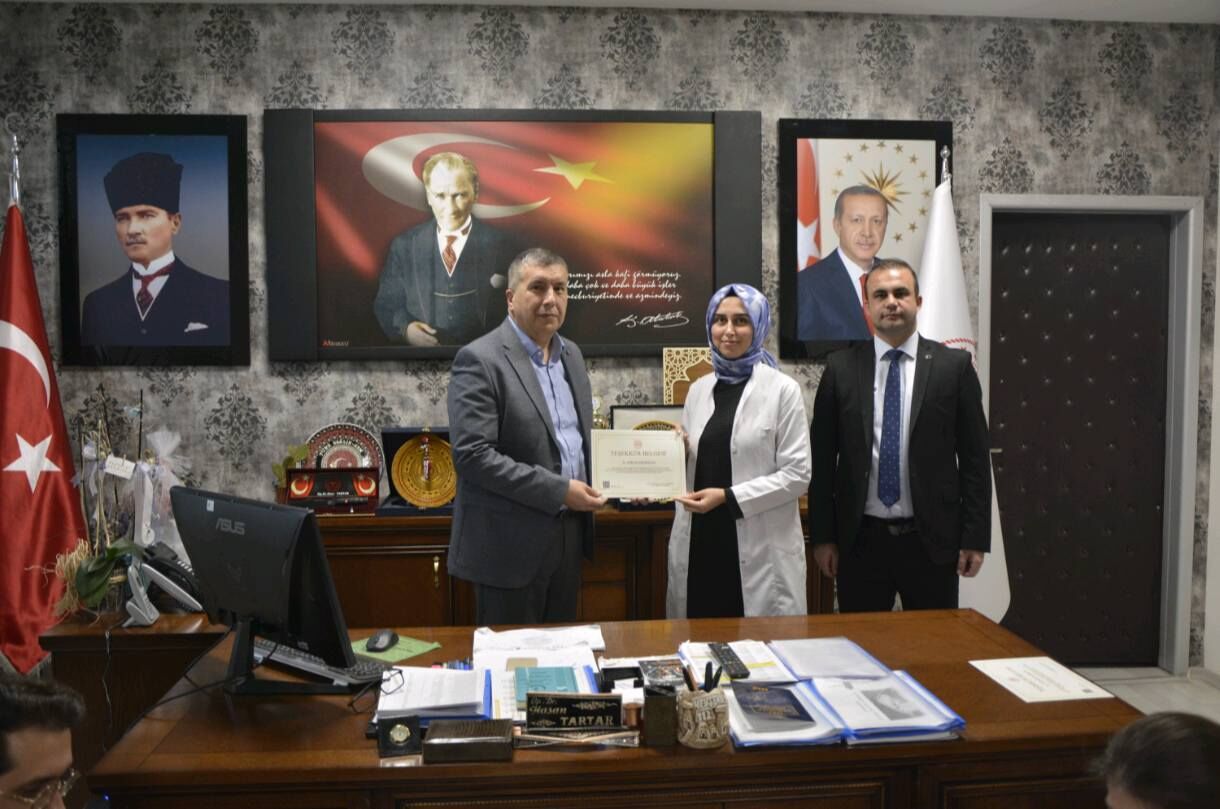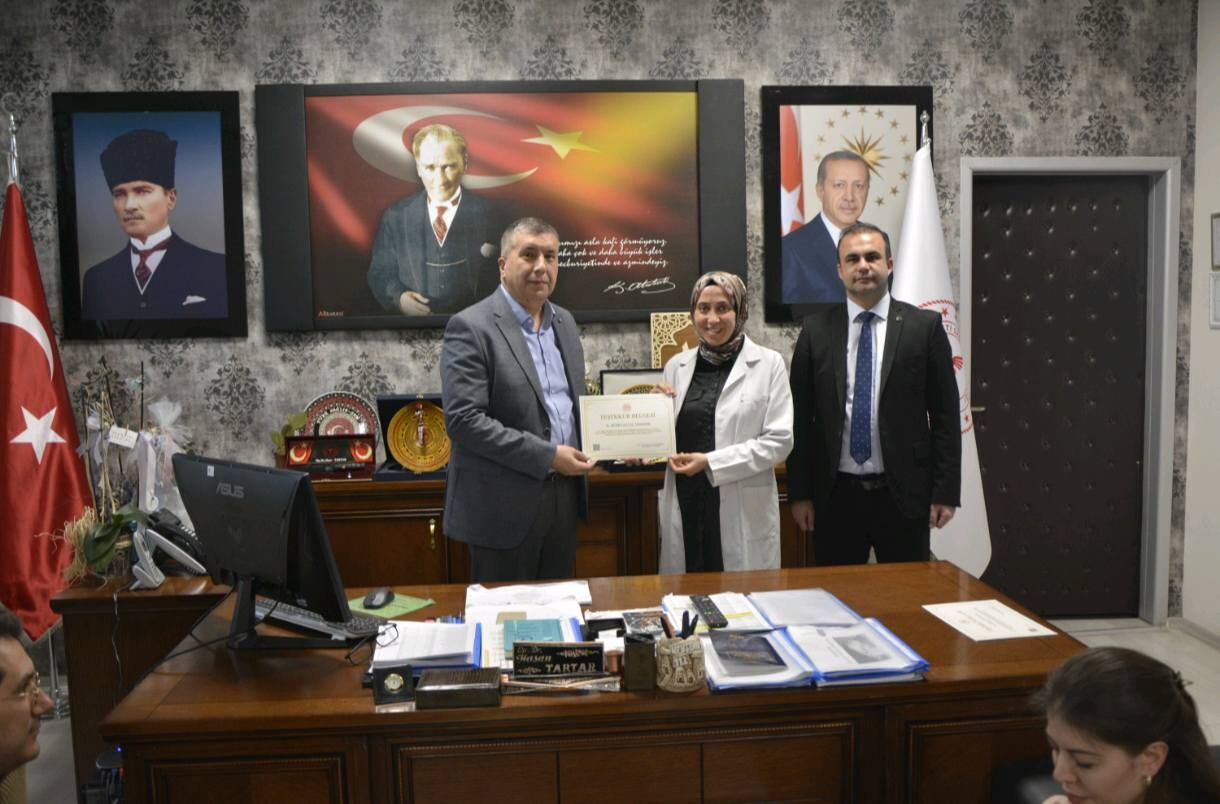 Teşekkür belgeleri, İl Sağlık Müdürü Op. Dr. Hasan Tartar tarafından verildi. Belgeler;