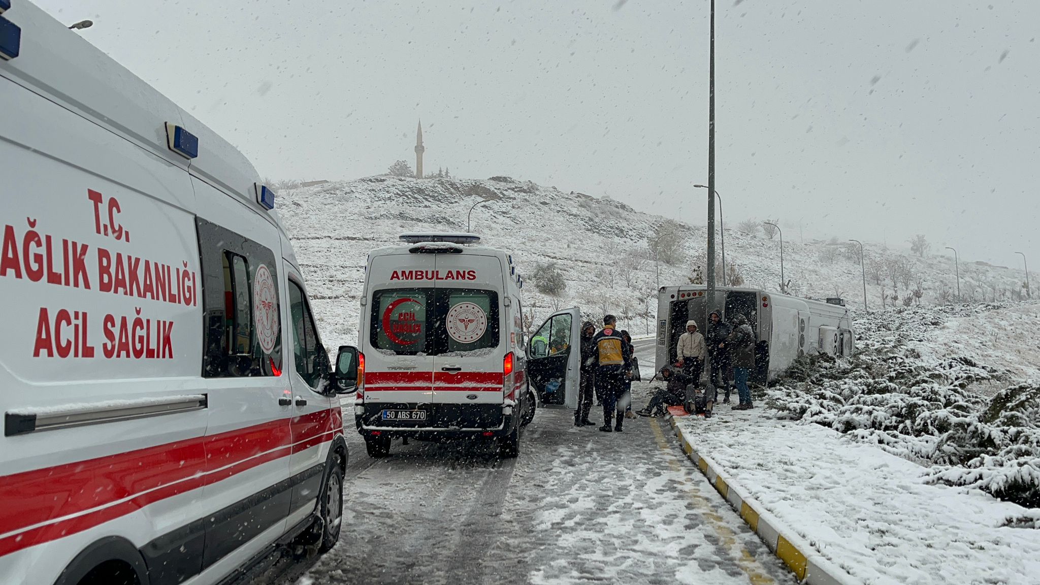 Kazada yaralanan 13 işçi, ambulanslarla Nevşehir’deki çeşitli hastanelere kaldırıldı.