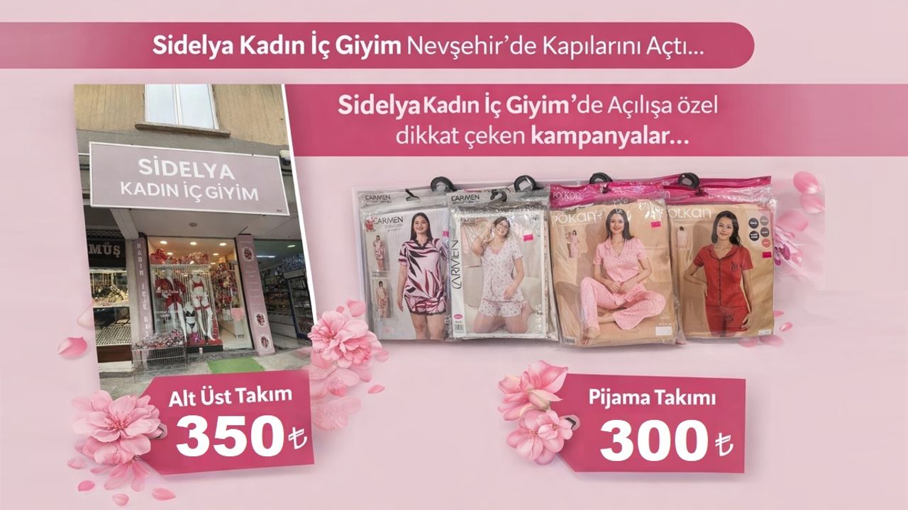 Nevşehir’de iç giyim alanında yeni bir alternatif sunan Sidelya Kadın İç Giyim, açılışa özel kampanyalarıyla müşterilerini bekliyor.