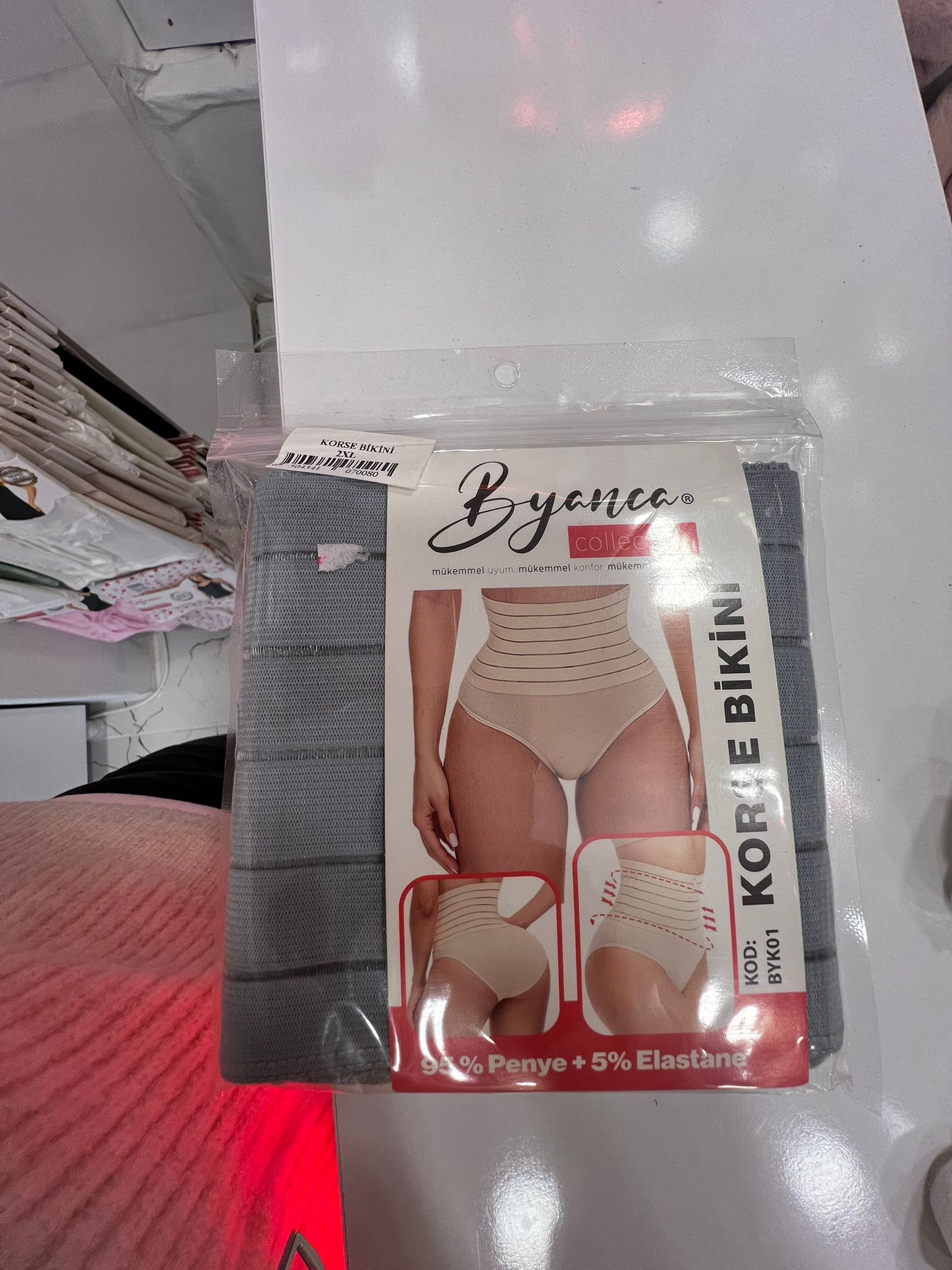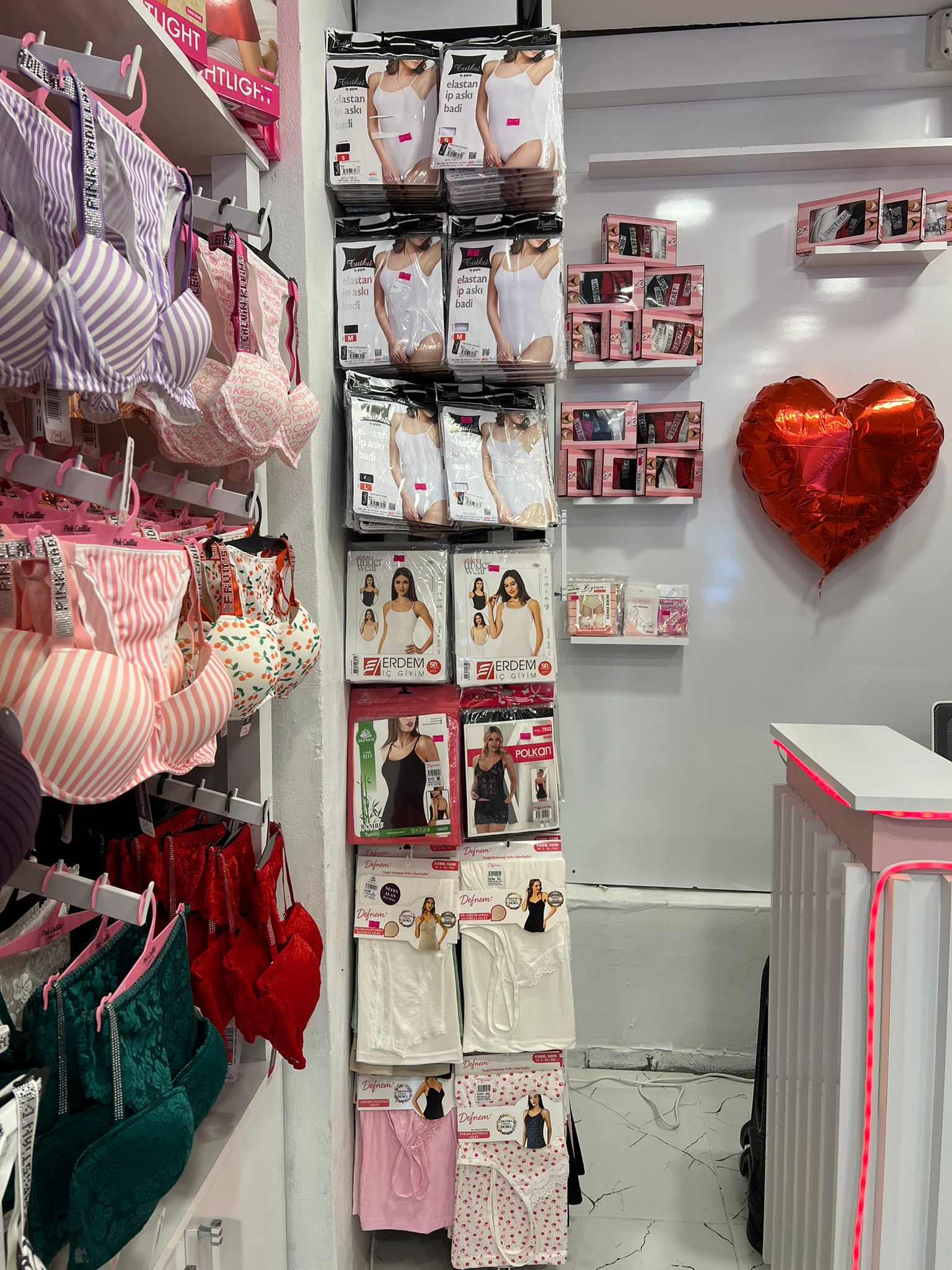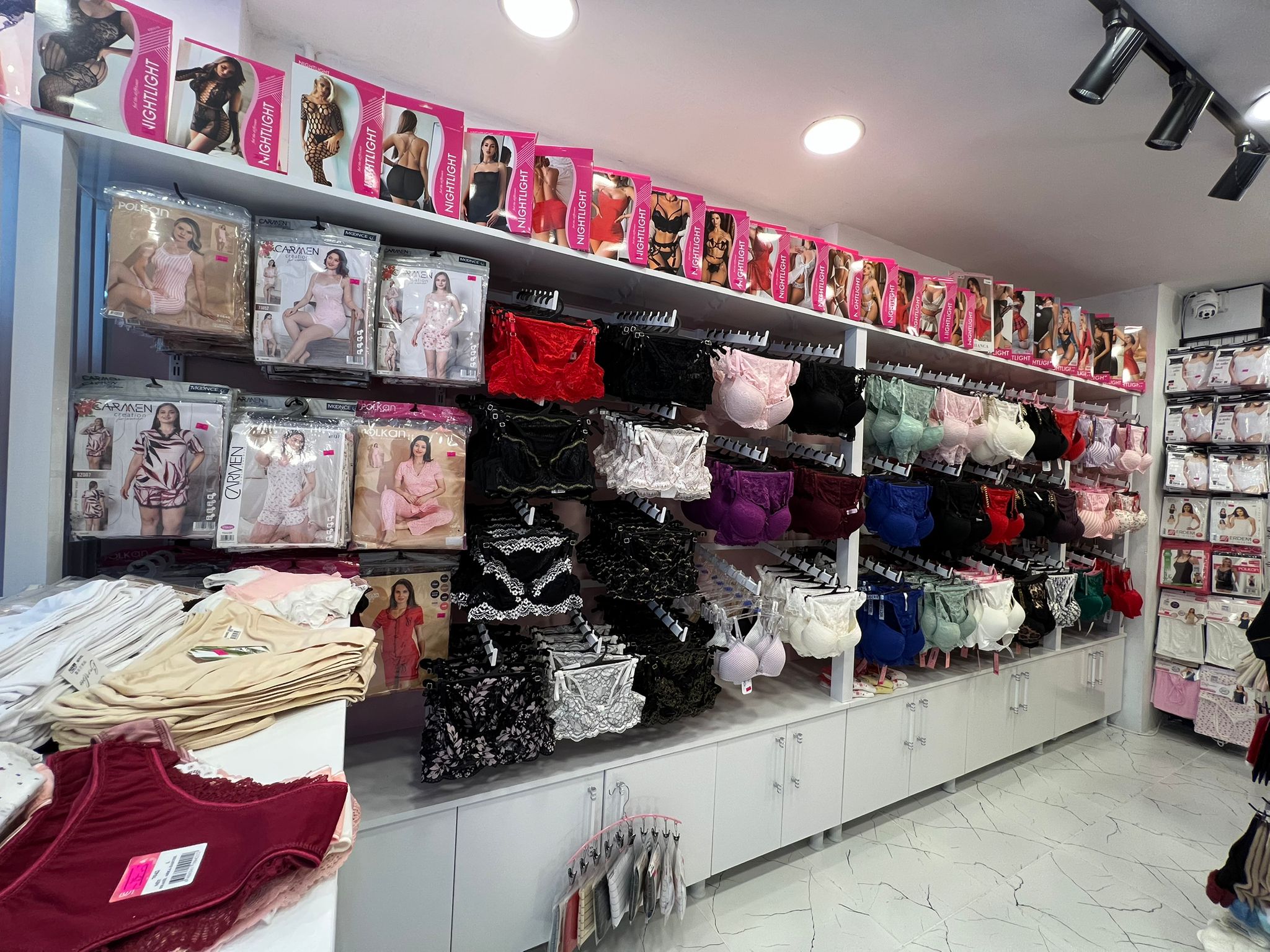 Mağazada ayrıca büyük beden takımlar, farklı model ve beden seçenekleriyle korse çeşitleri ile zıbın ve atlet ürünleri de yer alıyor.