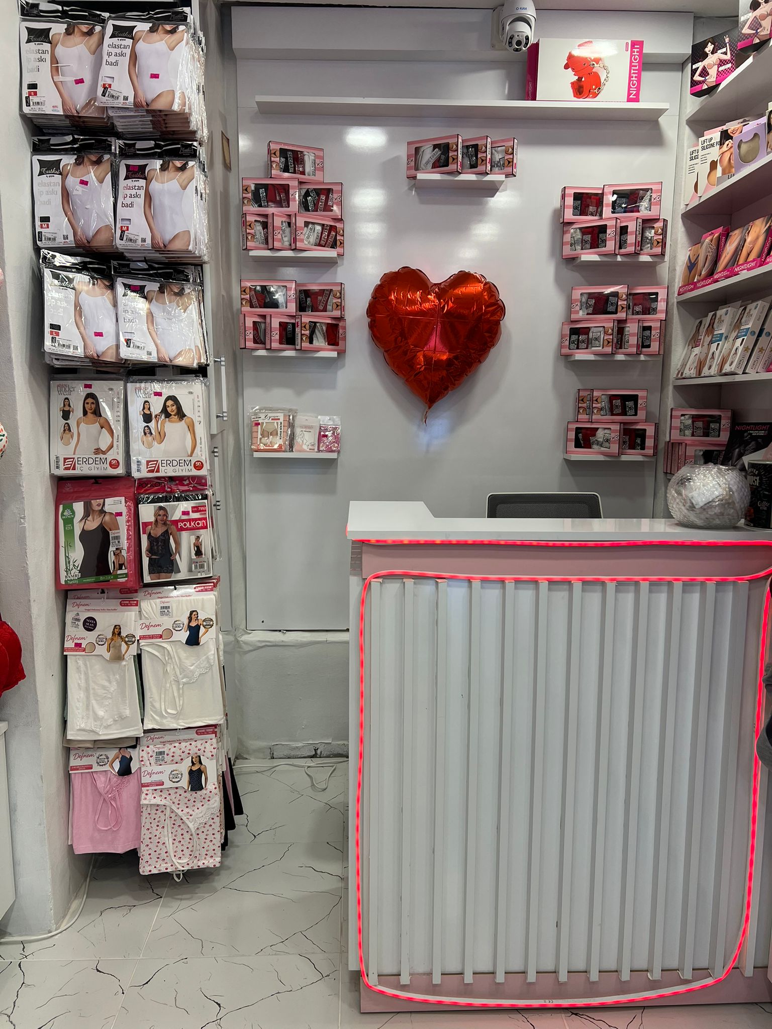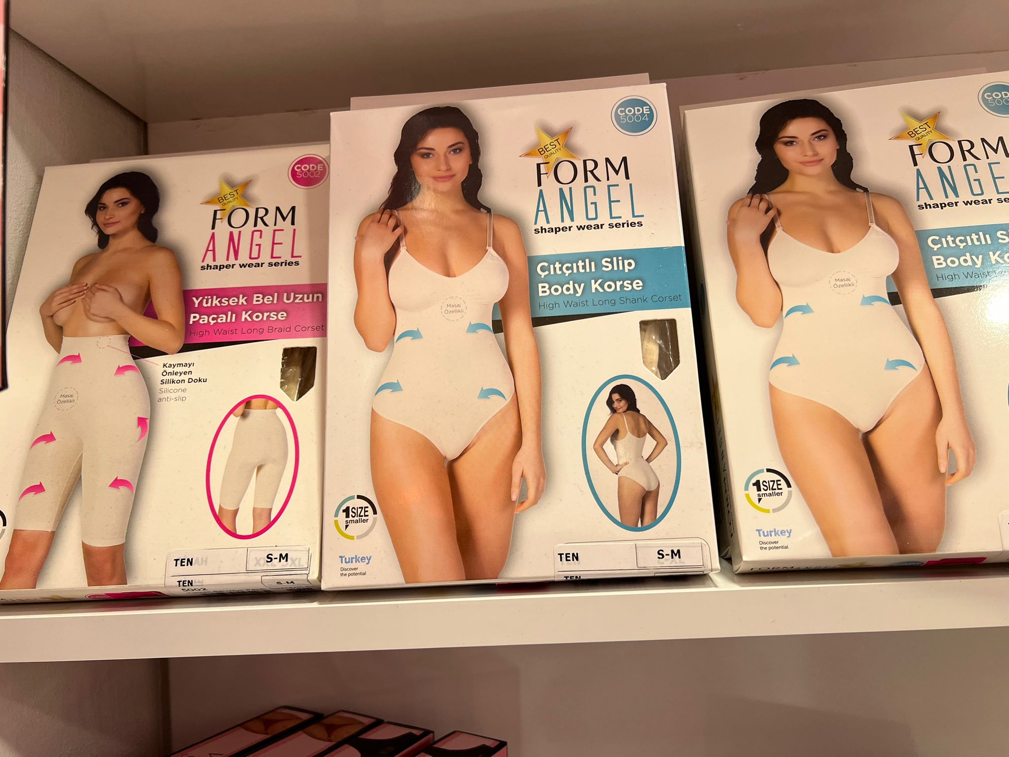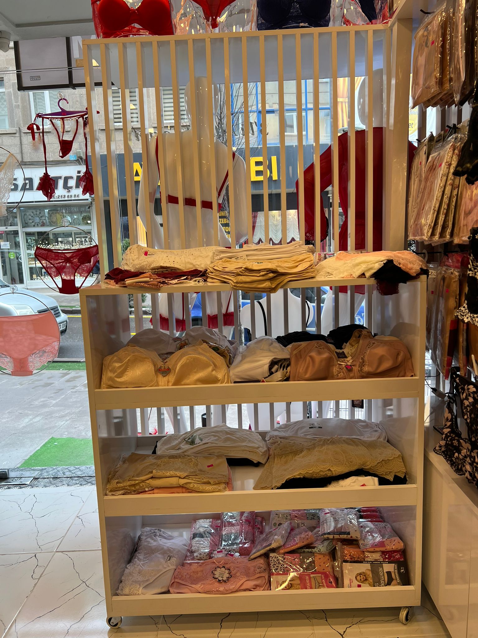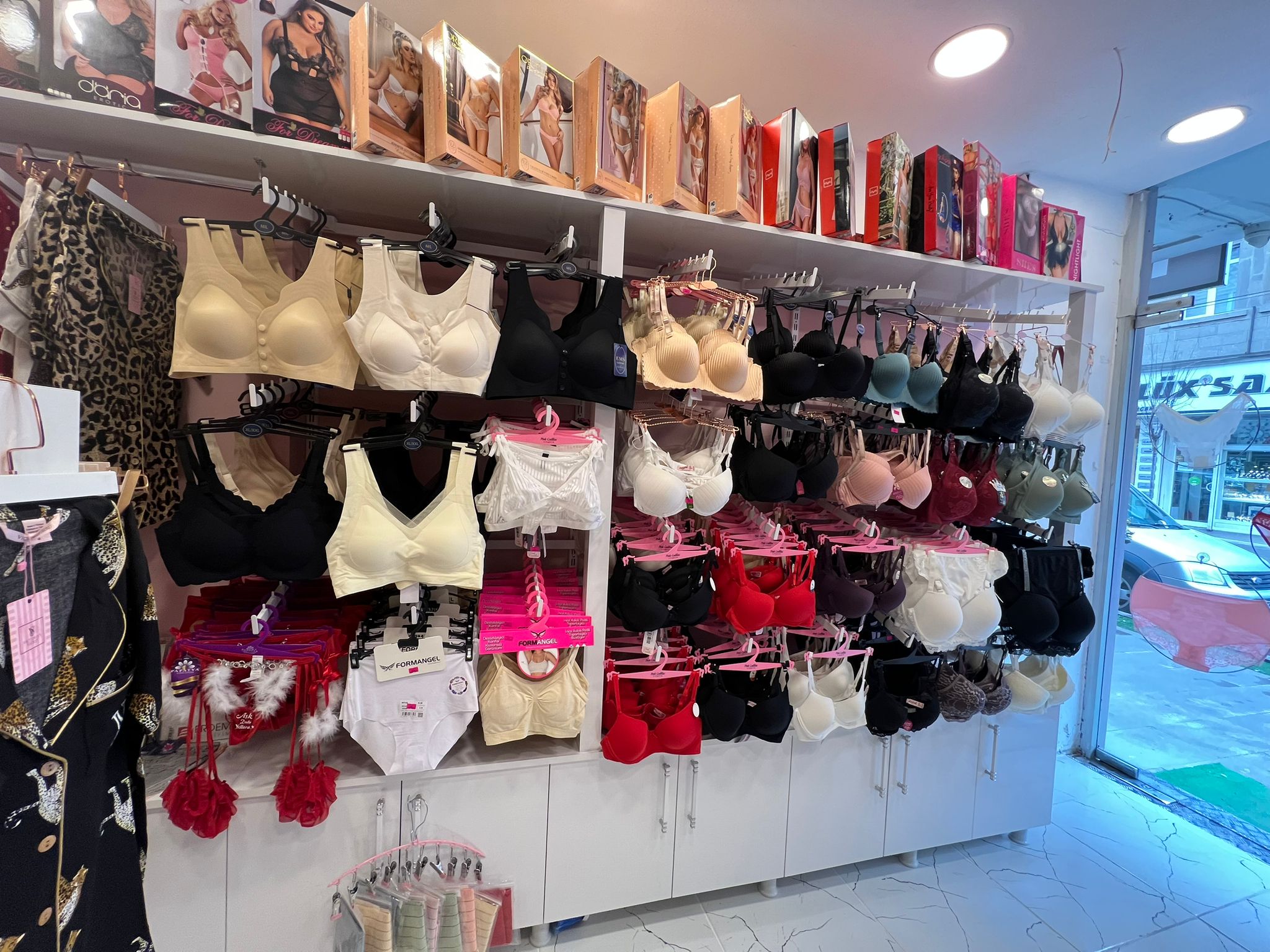 Mağazada ayrıca büyük beden takımlar, farklı model ve beden seçenekleriyle korse çeşitleri ile zıbın ve atlet ürünleri de yer alıyor.