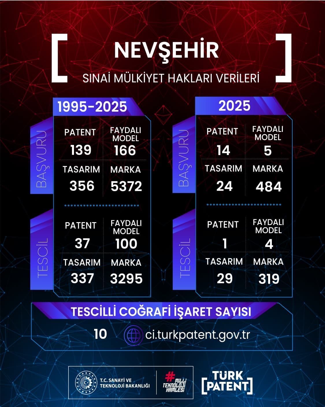 Nevşehir, artan başvuru ve tescil sayılarıyla sınai mülkiyet ekosistemine önemli katkı sağlıyor. Ticaret ve Sanayi Odası yetkilileri, ilde girişimciliğin ve markalaşmanın desteklenmesiyle bölgesel ekonominin güçlenmesini hedeflediklerini belirtiyor.