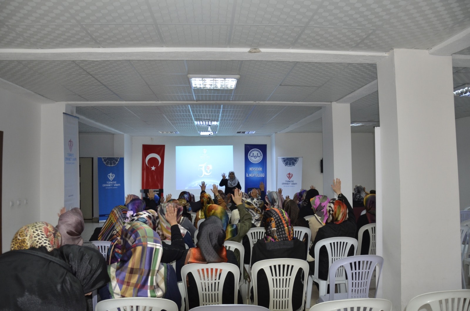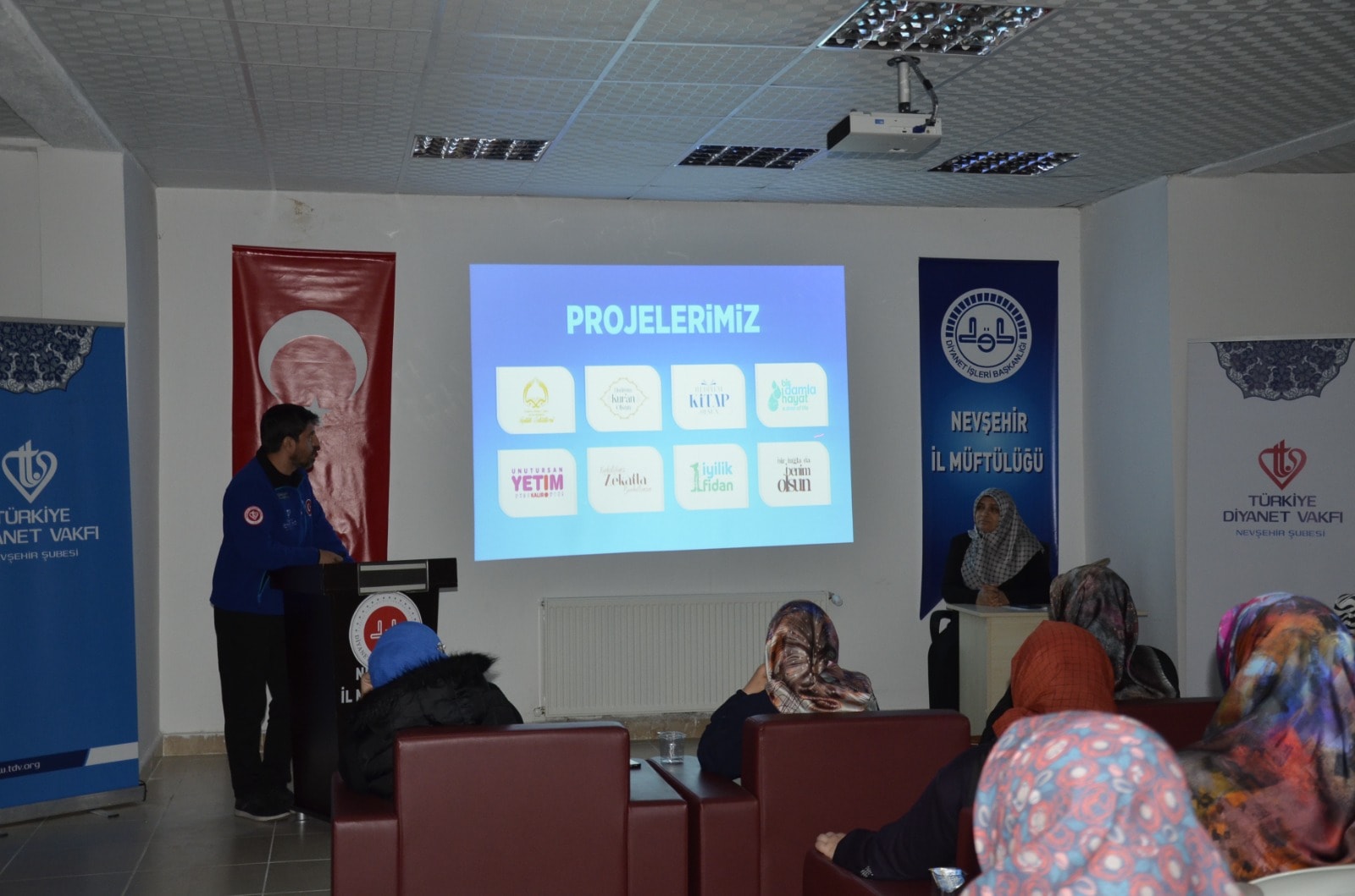 Türkiye Diyanet Vakfı (TDV) Nevşehir Şubesi Kadın Kolları, İl Müftü Yardımcısı Raziye Bozova başkanlığında Kur’an kursu öğreticileri ve gönüllülerin katılımıyla tanışma ve istişare toplantısı gerçekleştirdi. Toplantıda, bugüne kadar yapılan faaliyetler değerlendirilerek, toplumda iyiliği yayma, ve manevi çalışmalarda daha etkin bir iş birliği sağlama konuları ele alındı.