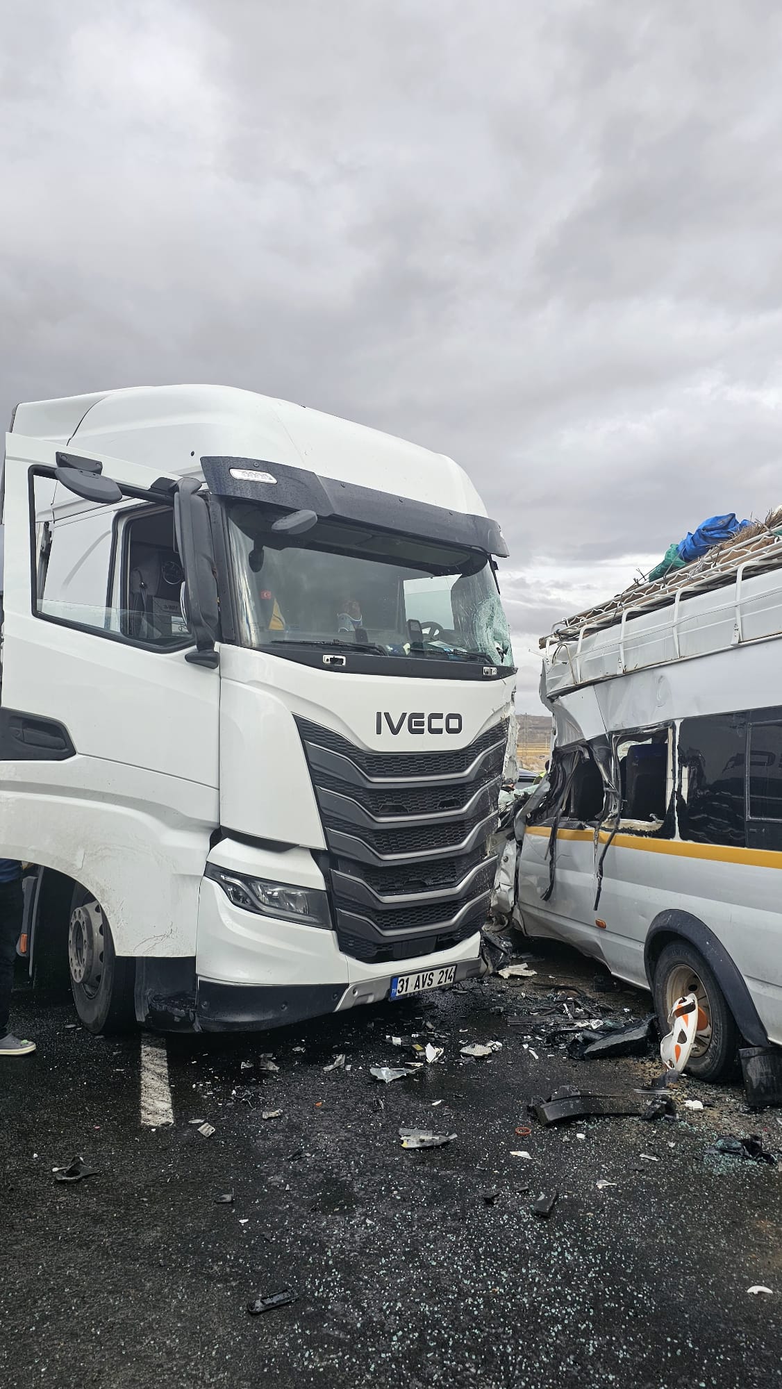 Edinilen bilgilere göre, B.B. idaresindeki 31 AVS 214 plakalı TIR ile Salih E. (52) yönetimindeki 06 ENL 348 plakalı transit minibüs kavşakta çarpıştı. Çarpışmanın etkisiyle minibüs içerisinde bulunan tarım işçileri yaralandı.