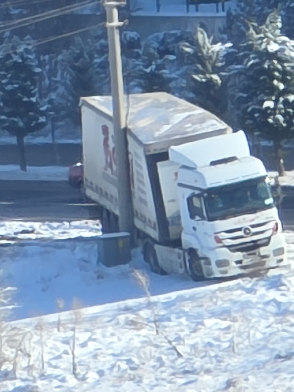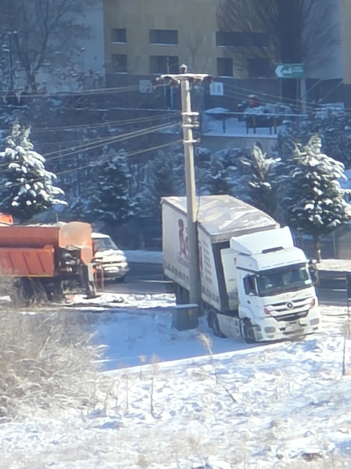 Nevşehir’de etkili olan kar yağışı ve buzlanma nedeniyle kontrolden çıkan bir tır, makaslayarak beton elektrik direğine çarptı. Meydana gelen kazada şans eseri yaralanan olmadı.