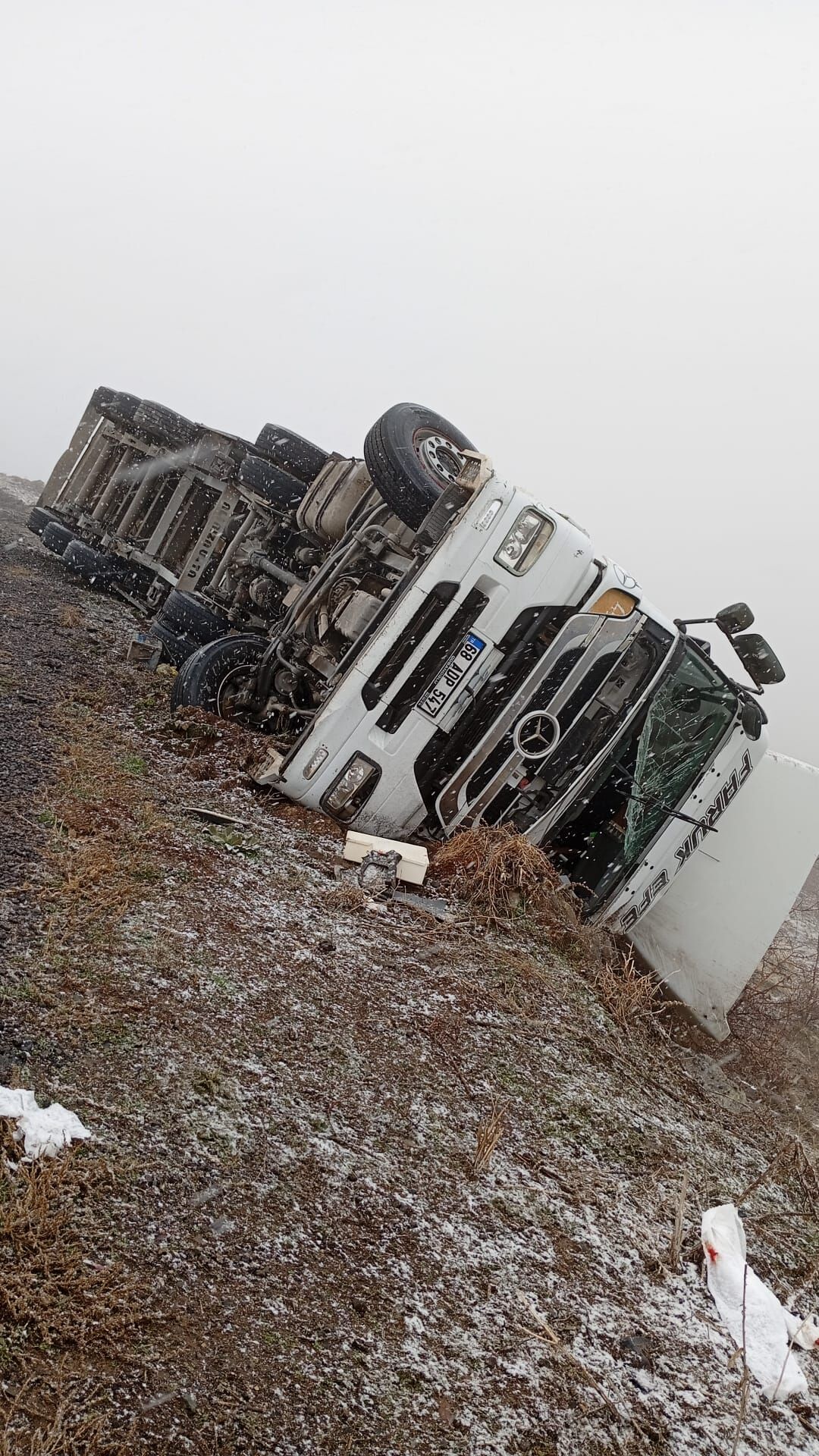 Edinilen bilgilere göre, Süt Birliği’ne ait 68 ADP 547 plakalı tır, keskin virajı alamayarak yol kenarına savruldu ve şarampole devrildi. Kontrolden çıkan tırın uçuruma yaklaşık 50 metre kala durması olası bir faciayı önledi.