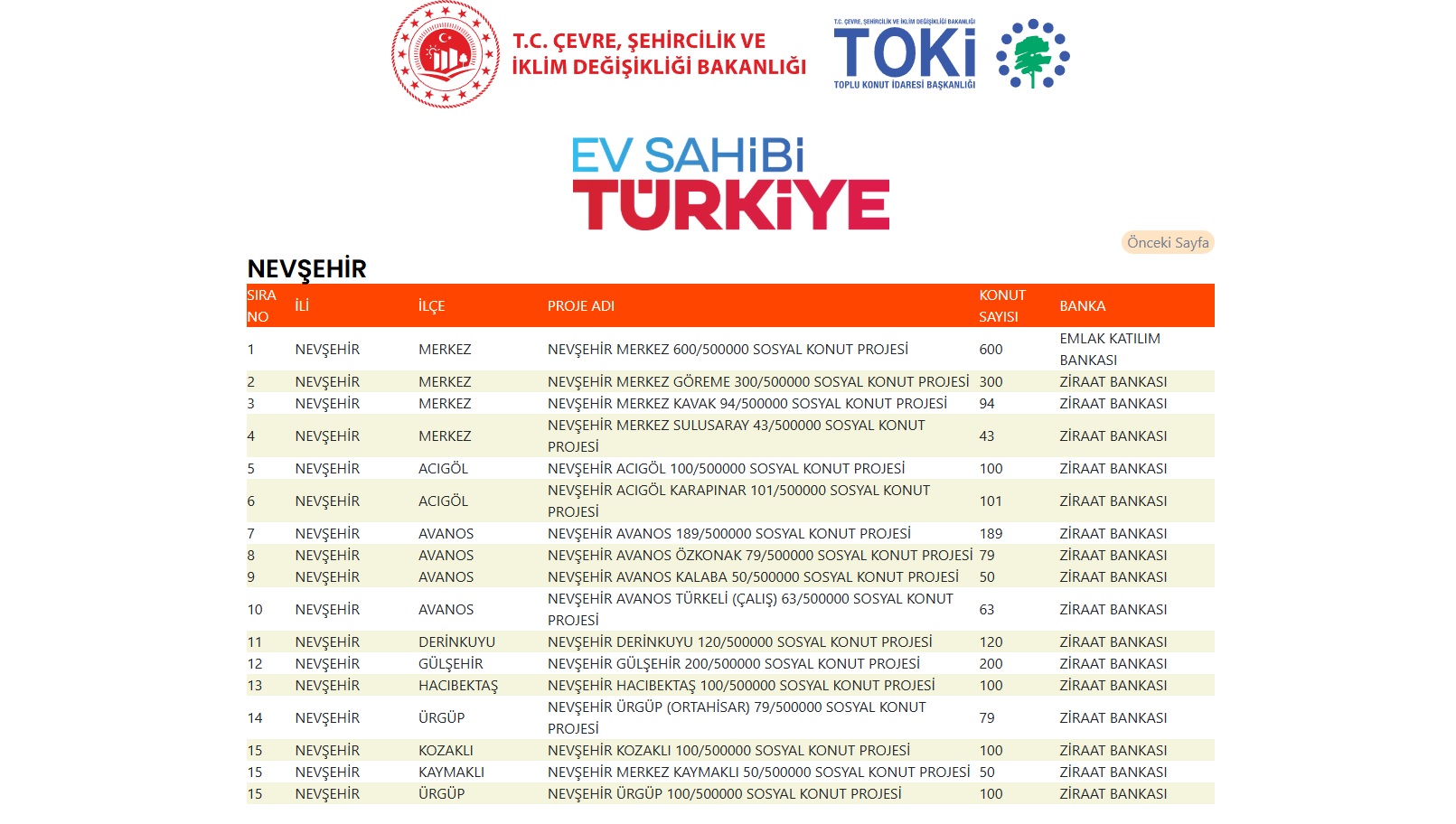Nevşehir genelinde planlanan 2.368 konutun ilçe dağılımı şu şekilde: