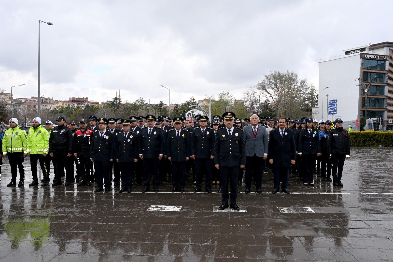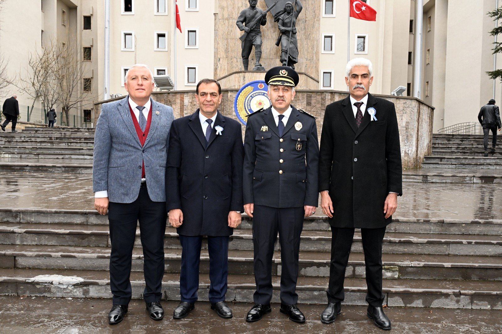 Nevşehir Valiliği önünde düzenlenen törene Nevşehir İl Emniyet Müdürü Serkan Karaman , İl Emniyet Müdür Yardımcıları, Şube Müdürler, Amirlerle, Polis teşkilatından emekli Çat Belediye Başkanı Zübeyir Kalay, Göre Belediye Başkanı İsmail Güzel ile Nevşehir Vatan Şehitleri ve Gazileri Derneği Başkanı Ramazan Çiftçi'nin katılımı ile Atatürk Anıtına çelenk sunularak saygı duruşu ve İstiklal Marşından sonra tören sona erdi.