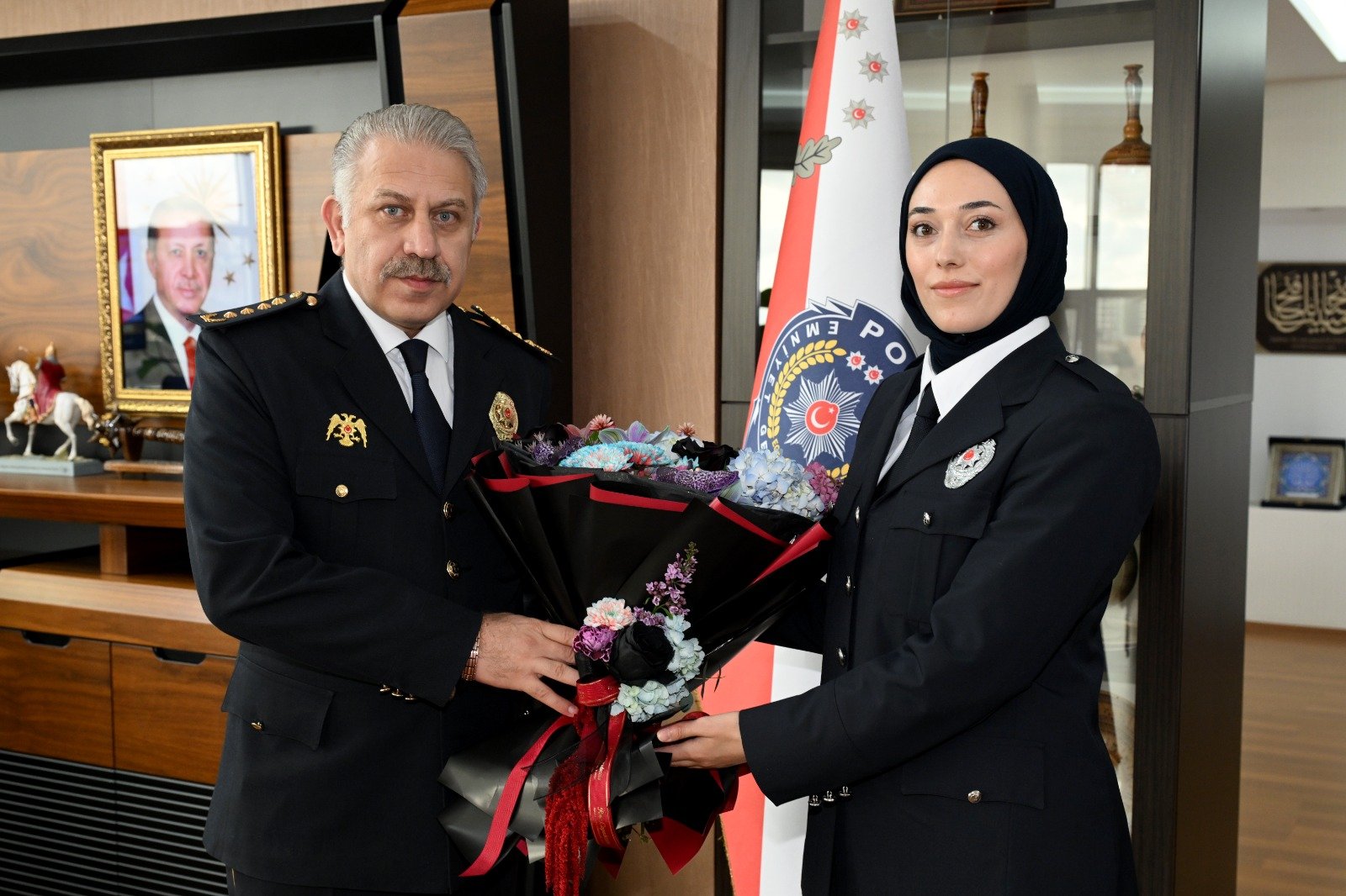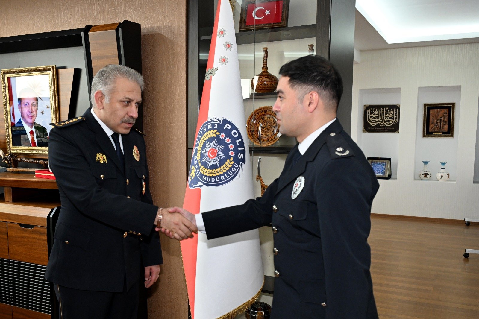 Polis Haftası etkinlikleri çerçevesinde İl Emniyet Müdürü Serkan Karaman, teşkilatın 181. kuruluş yıl dönümü dolayısıyla personellerini makamında kabul etti. Ziyarette emniyet personelinin Polis Haftası’nı kutlayan Karaman, görevlerinde başarılar diledi.