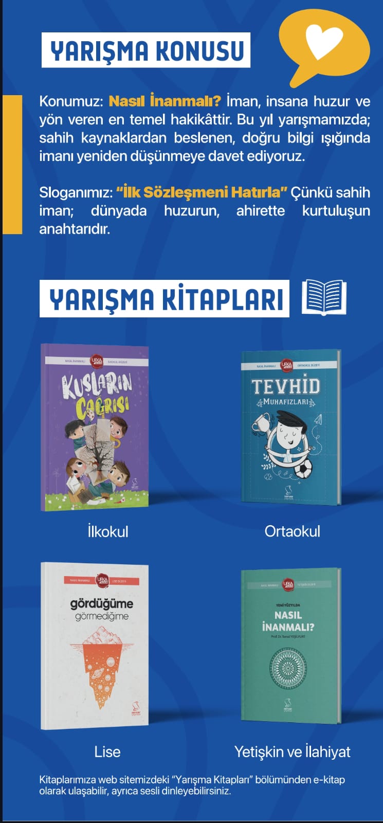 Yarışma; ilkokul, ortaokul, lise, yetişkin ve ilahiyat düzeyinde 5 ayrı kategoride yapılacak. Katılımcılar, kaynak eserler eşliğinde iman esaslarını, kulluk bilincini ve hayatı anlamlandırmanın yollarını yeniden keşfedecekler.