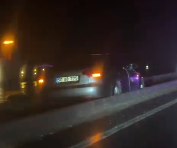 Edinilen bilgilere göre, Akşam saatlerinde 50 AB 775 plakalı otomobil, yağış nedeniyle kayganlaşan yolda seyir halindeyken sürücüsünün direksiyon hâkimiyetini kaybetmesi sonucu kontrolden çıktı. Savrulan araç, karşı şeride doğru yöneldikten sonra orta refüje çıkarak durabildi.