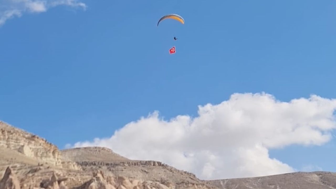 Nevşehir halkının yoğun ilgi gösterdiği etkinlikte, gökyüzündeki bayraklar alkışlarla karşılandı.