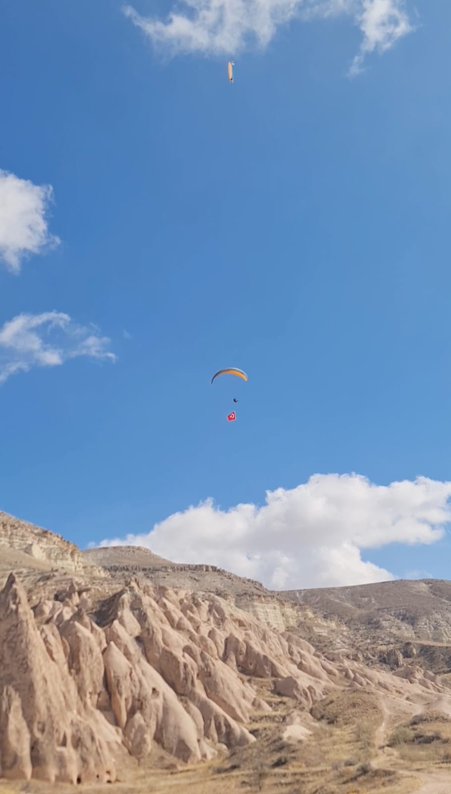 Cumhuriyetimizin 102. yılı, Nevşehir semalarında unutulmaz bir gösteriyle kutlandı. Türkiye Hava Sporları Federasyonu Nevşehir İl Temsilcisi Tamer Adıyaman öncülüğünde, Nevşehir Akdoğan Havacılık yamaç paraşütü pilotları, Göreme semalarında Türk bayraklarını gökyüzünde dalgalandırarak Cumhuriyet Bayramı’nı kutladı.