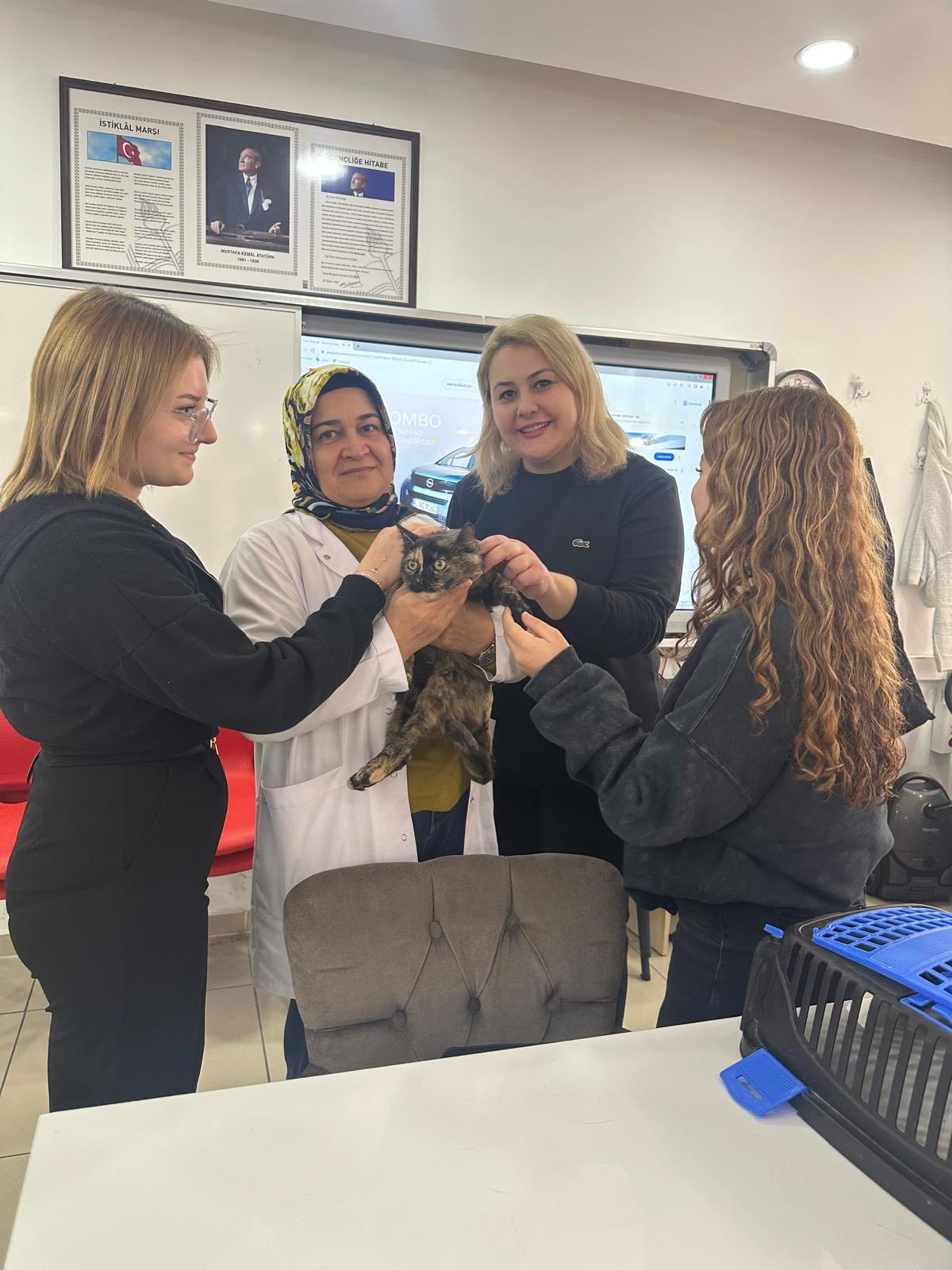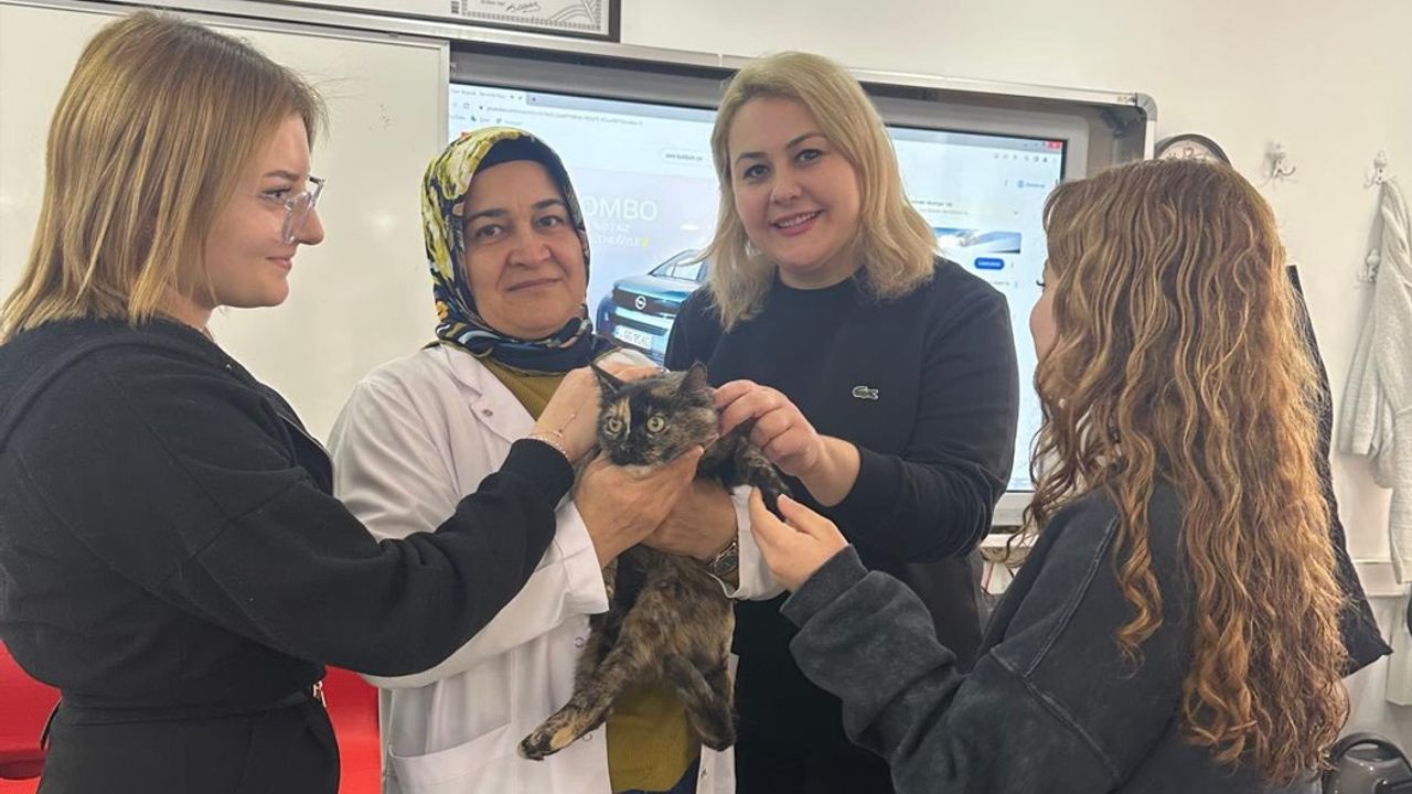 Tedavi sürecinin ardından tamamen iyileşen kediye, okulun Güzellik Hizmetleri Alanı öğrencilerinden Azra Edepli sahip çıktı. Edepli’nin kediyi sahiplenmesi okulda mutlulukla karşılandı.