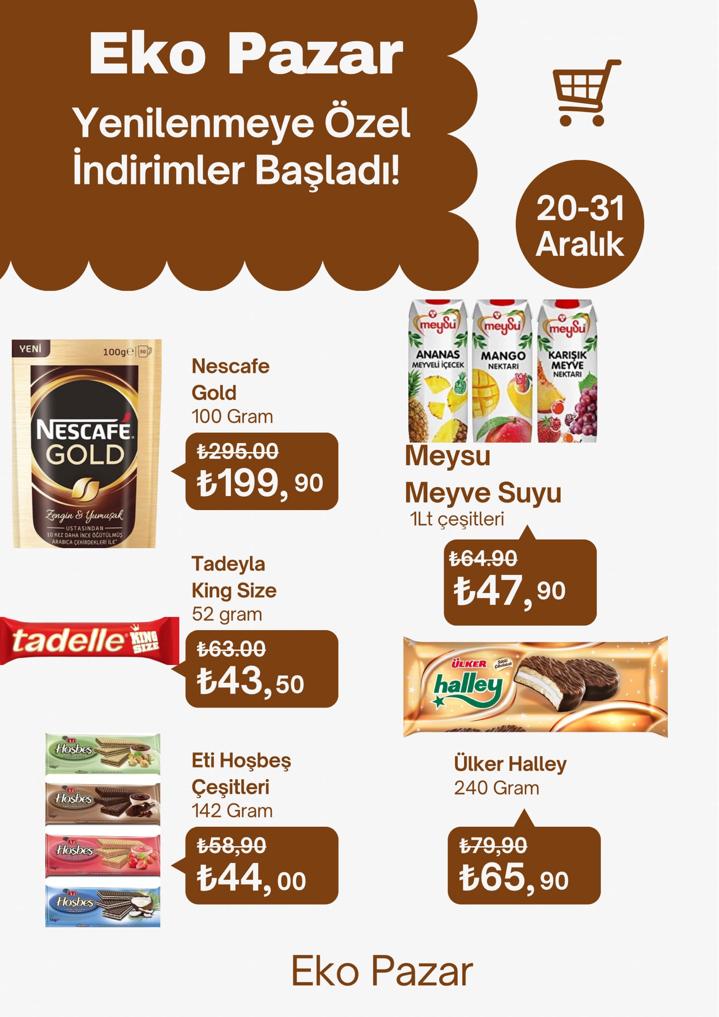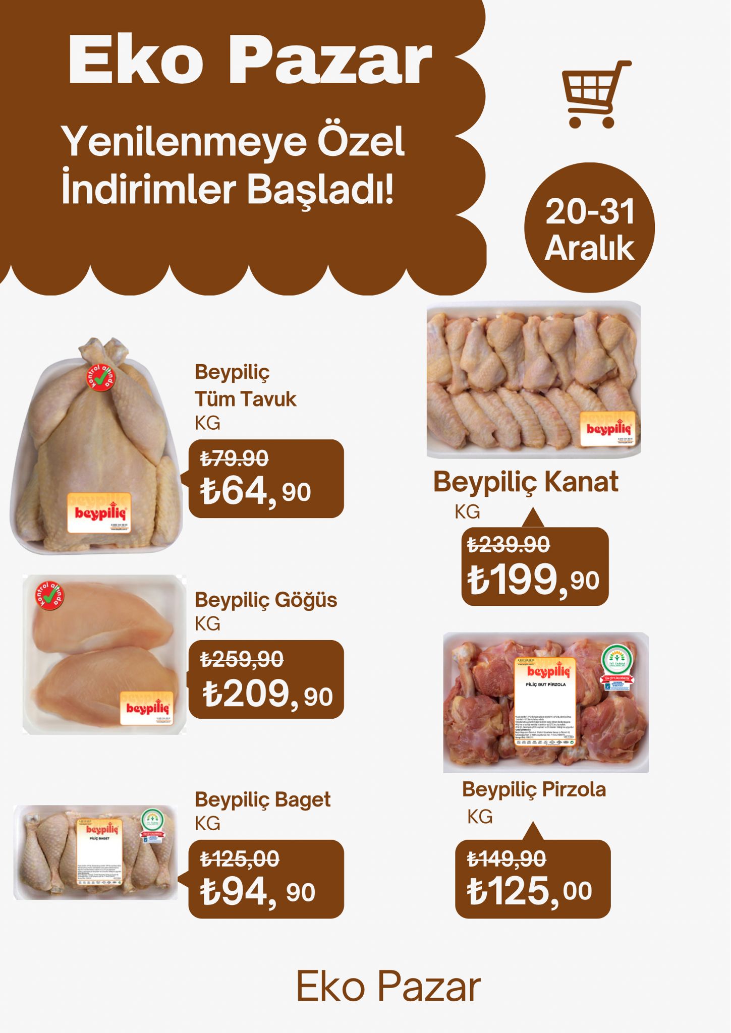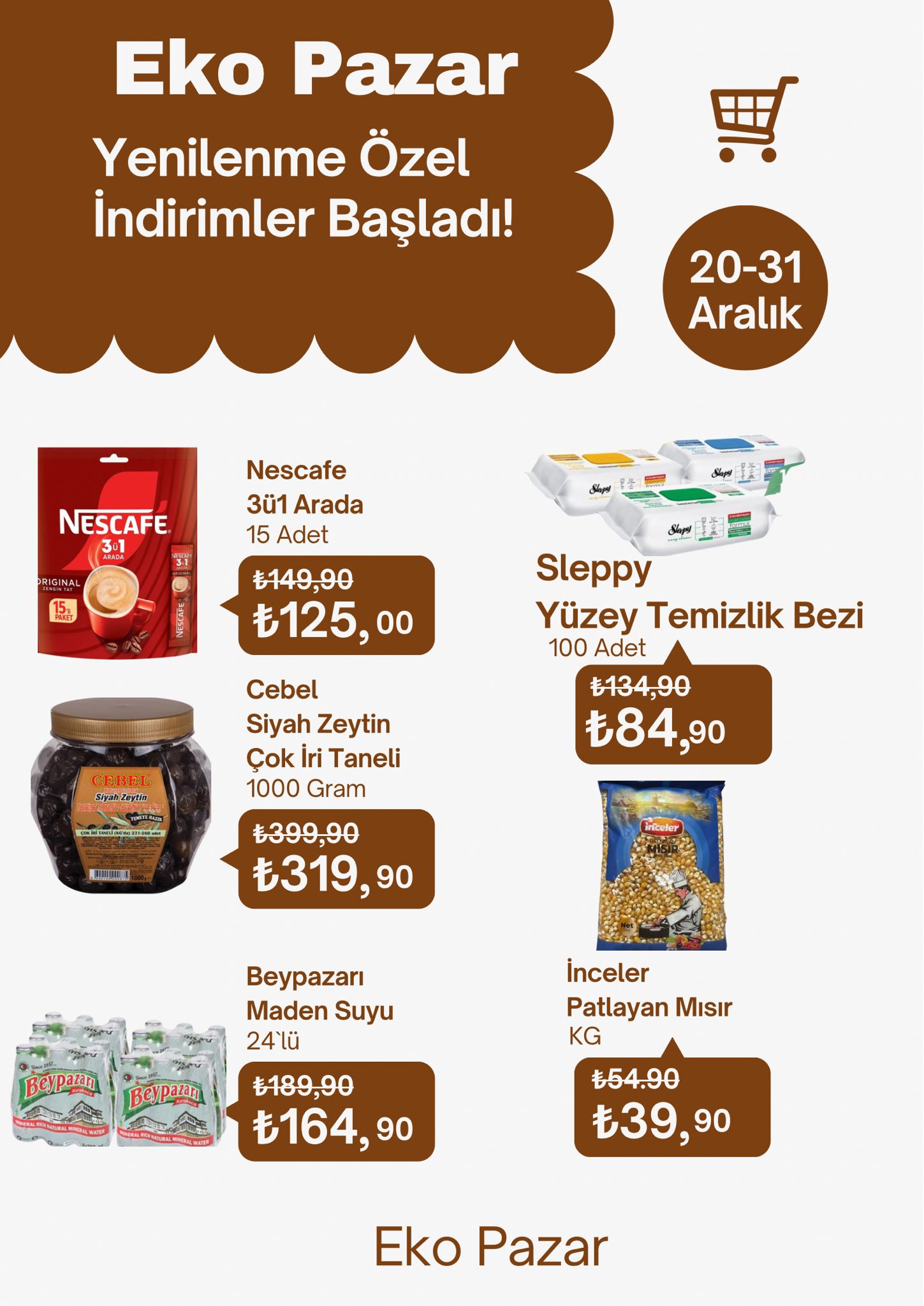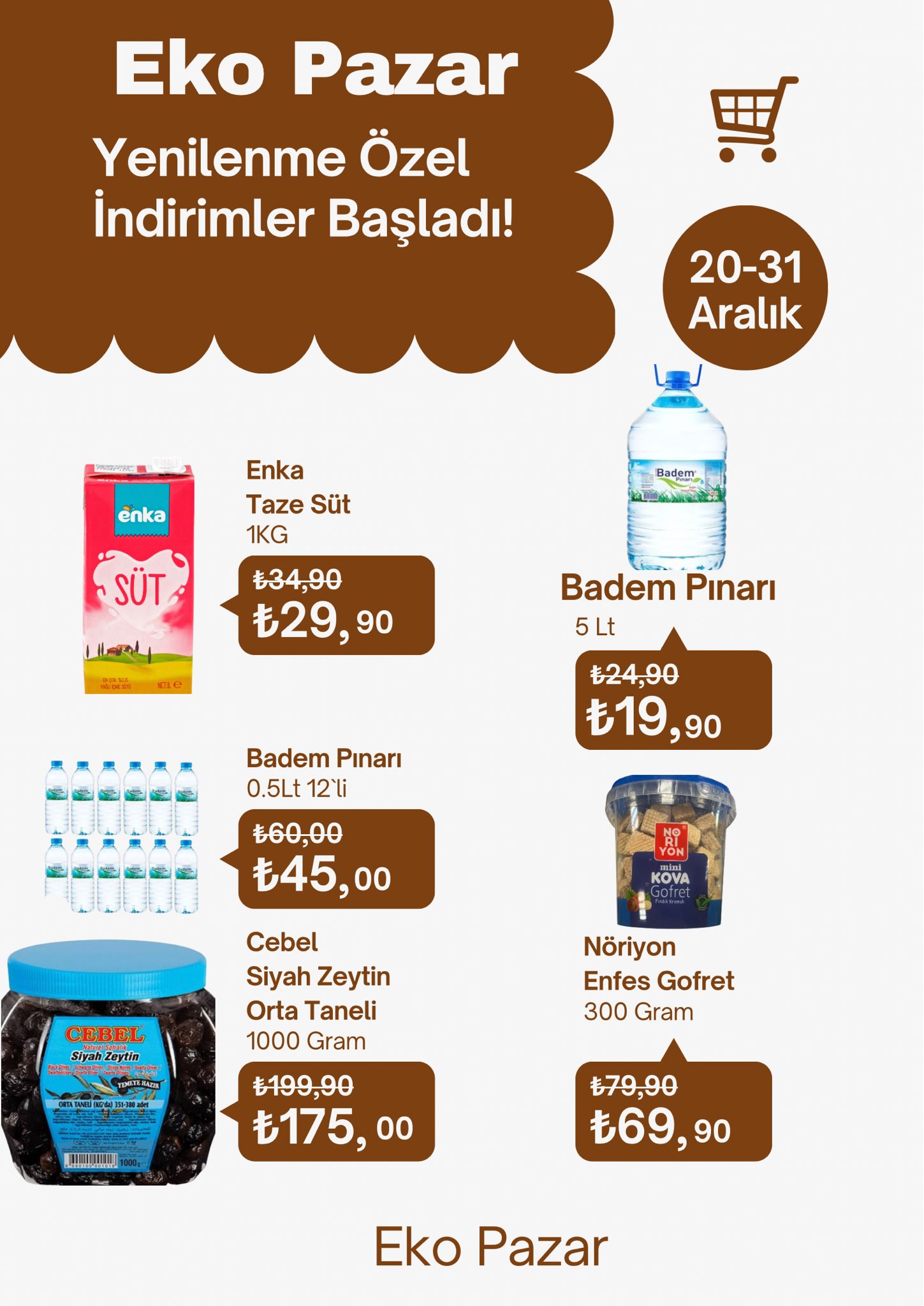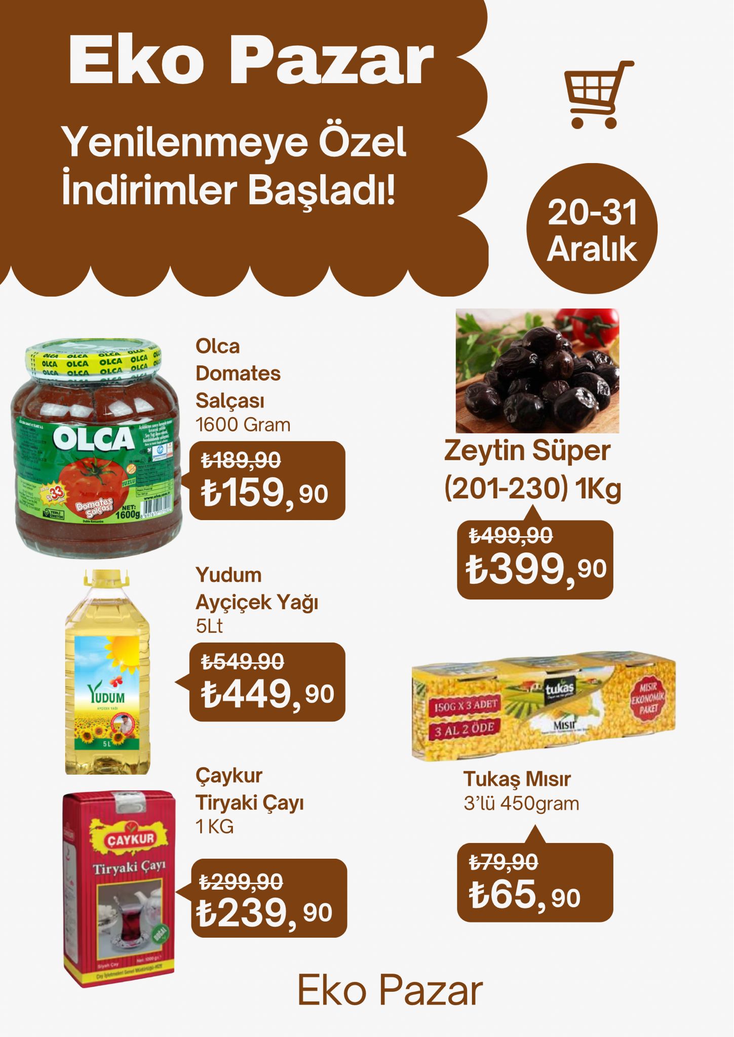 Market yetkilileri, yenilenmeye özel hazırlanan bu kampanyanın sınırlı süreli olduğunu belirterek, alışveriş yapmak isteyen vatandaşların 20–31 Aralık tarihleri arasında Eko Pazar’a uğramalarını tavsiye etti.
