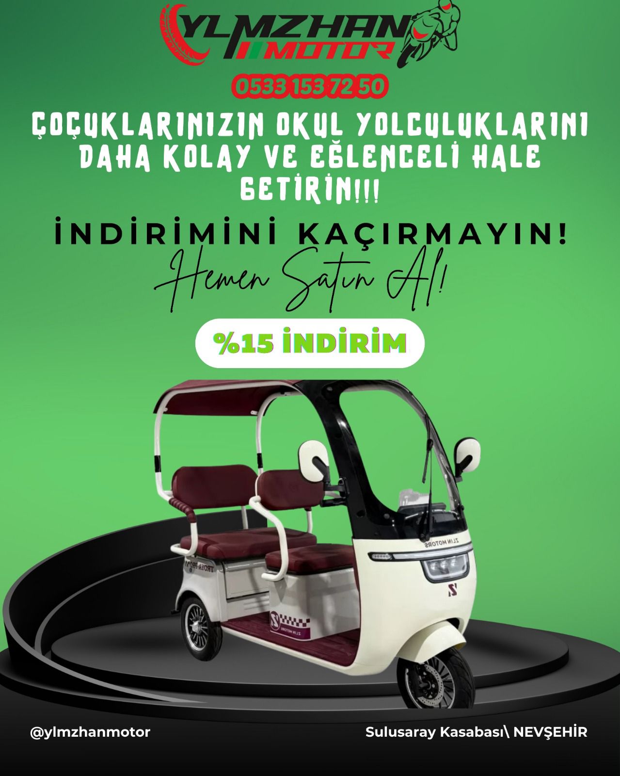 “Okul yolunda güven, şehir içinde konfor! Elektrikli motorlarda sonbaharın en büyük indirimi başladı. %15’e varan avantajlarla hemen sahip olun!”